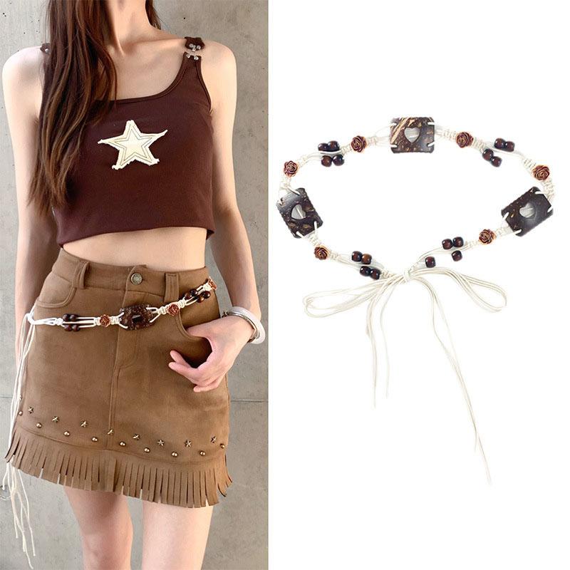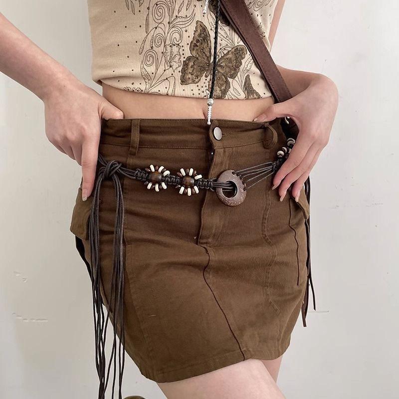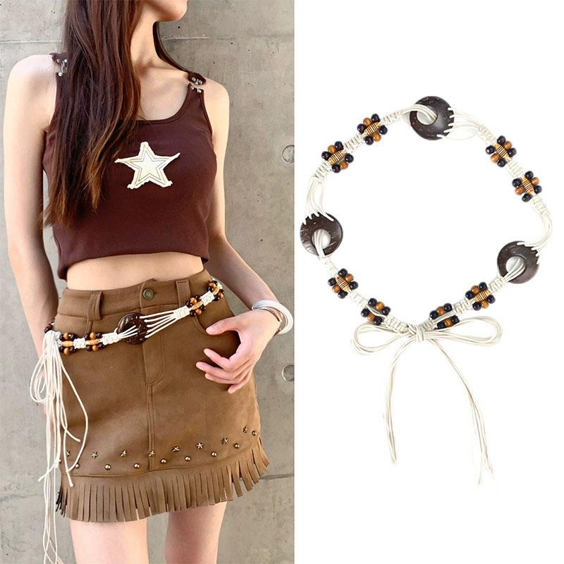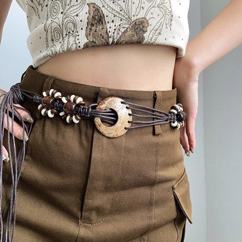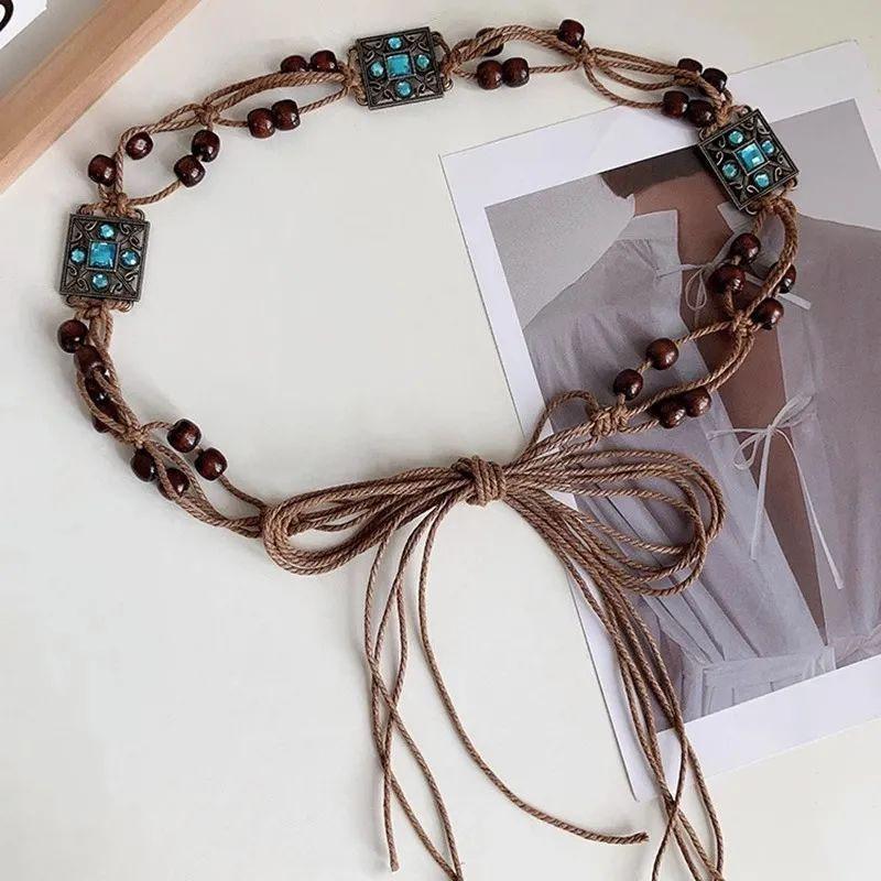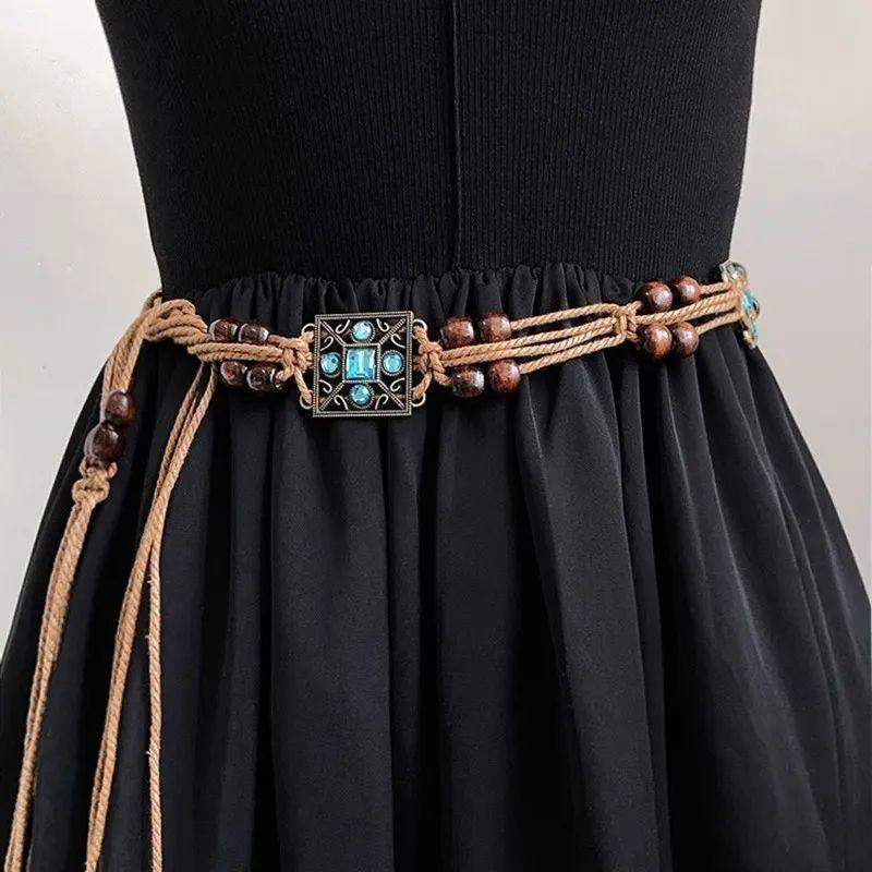 Винтажный этнический стиль, ручная работа, поясная веревка, женское платье, декоративная поясная цепочка, универсальный богемный ремень Y2K