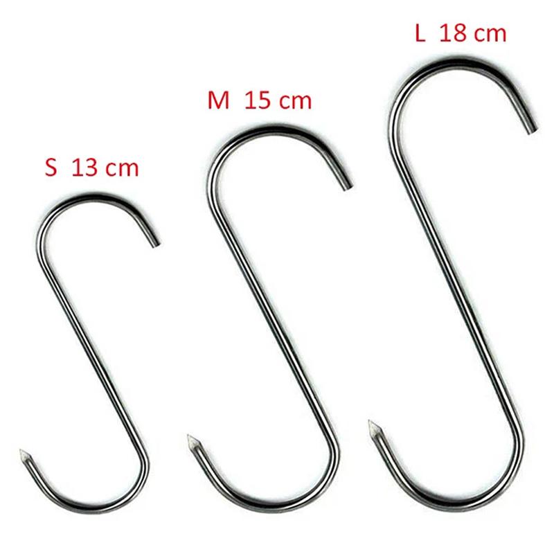 10 шт. крючков S из нержавеющей стали с острым кончиком для посуды, вешалки для одежды и мяса
