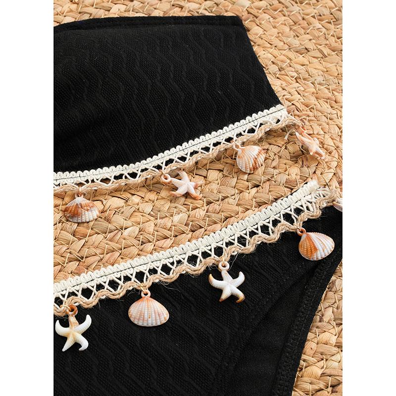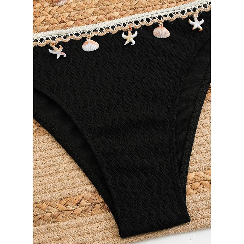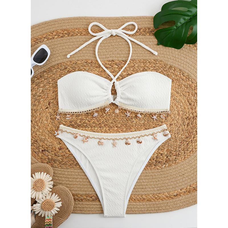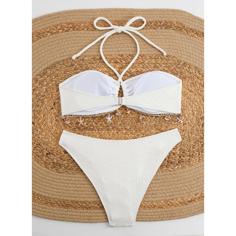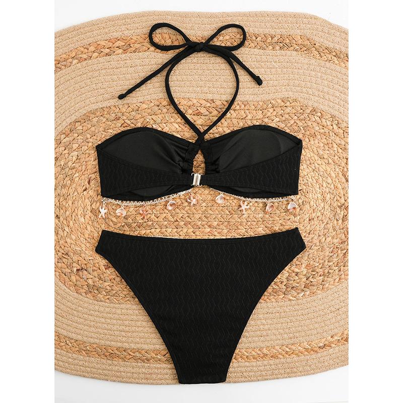 Сексуальное бикини с подвеской в виде ракушки, шейный ремешок, однотонный купальник, женское бикини, новый стиль, женский купальник