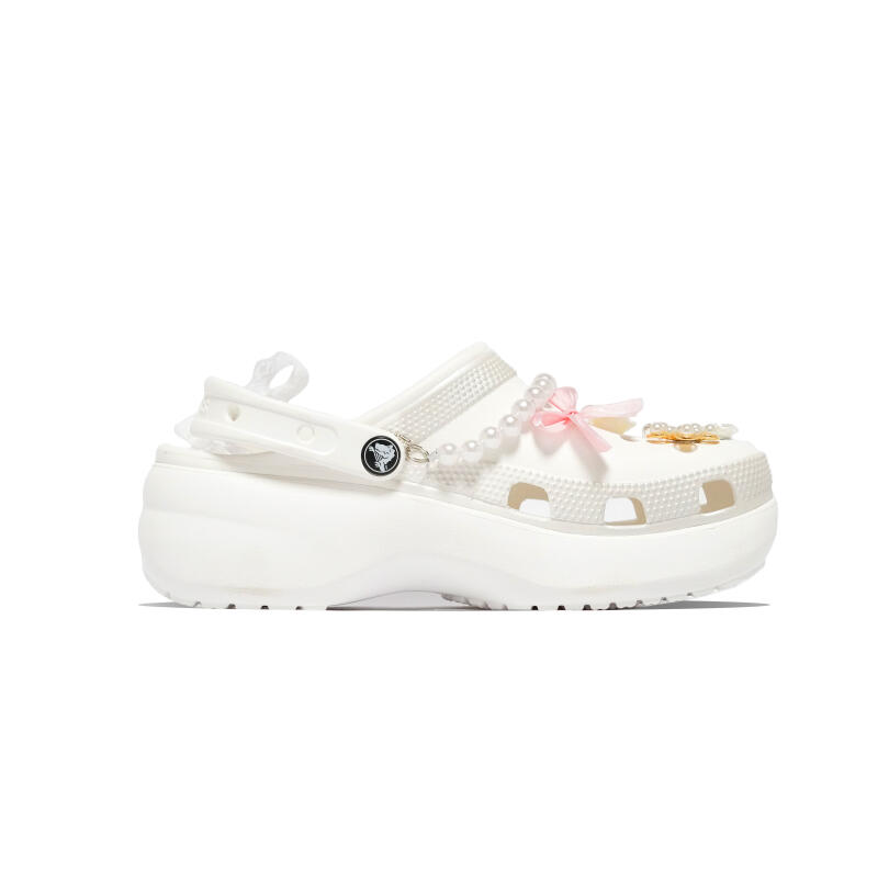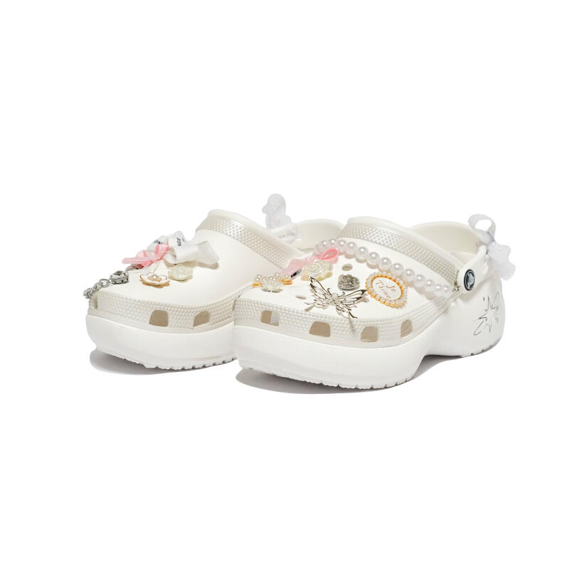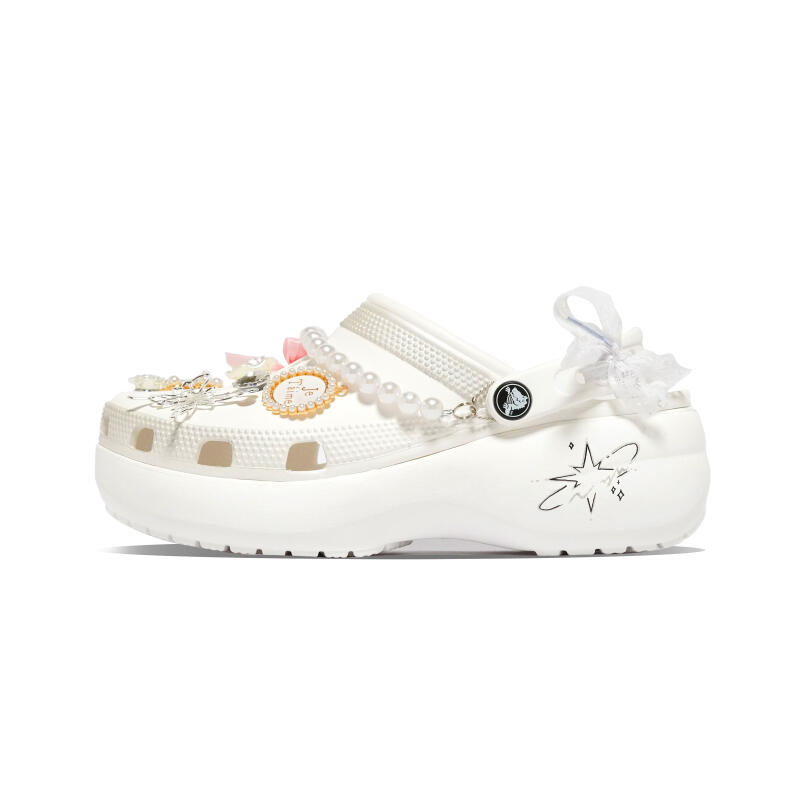 Crocs Классические клоги на платформе Star EVA с бантом Classic Cloud Girl Универсальные дырчатые туфли Женские Серебристо-белые