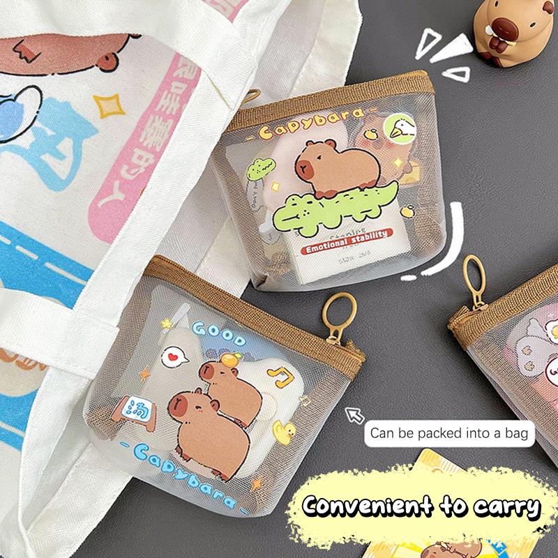 Милый кошелек для хранения монет с капибарой, прозрачный сетчатый кошелек для монет, мультяшный милый кошелек, портативные водонепроницаемые прозрачные сумки на молнии, подарки