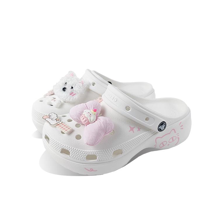 Crocs Классические клоги на платформе EVA Вопрос Кот Маленький Свежий Милый Кот Универсальные Классические Облачные Док Нишевые Дырявые Туфли Унисекс Белый
