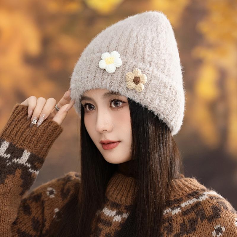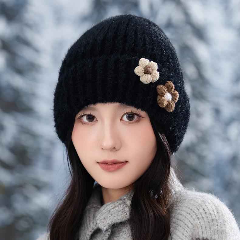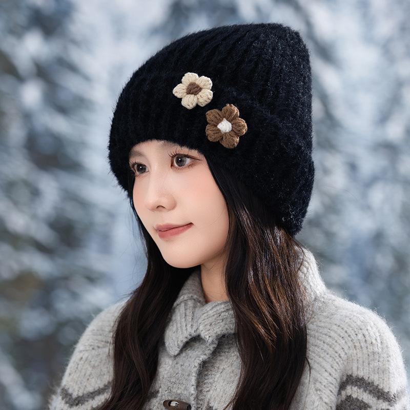 Зимняя уличная утолщенная теплая шерстяная шапка женская теплая шапка с защитой ушей шапка с цветком