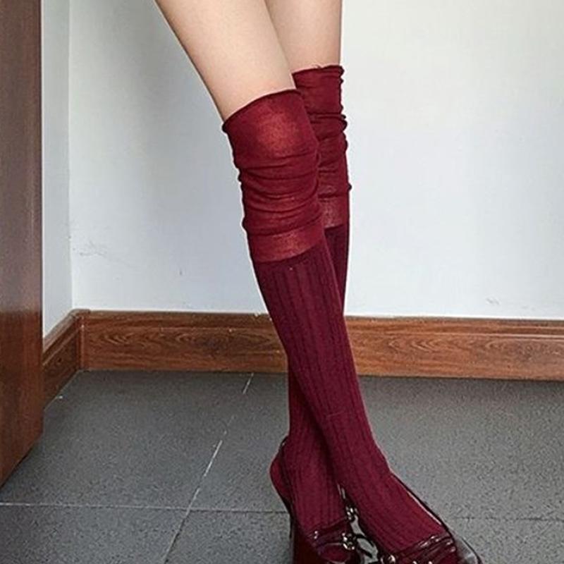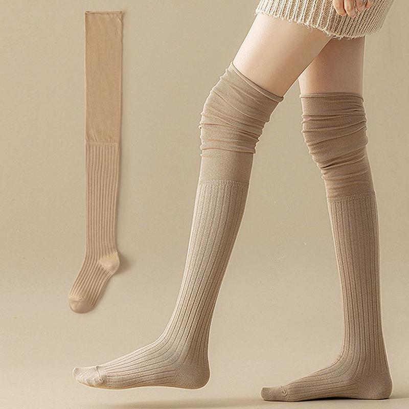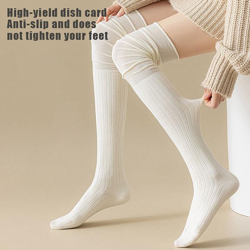 Однотонные высокие чулки для женщин, модные повседневные женские длинные носки выше колена, термобелье, теплые хлопковые леггинсы-трубы