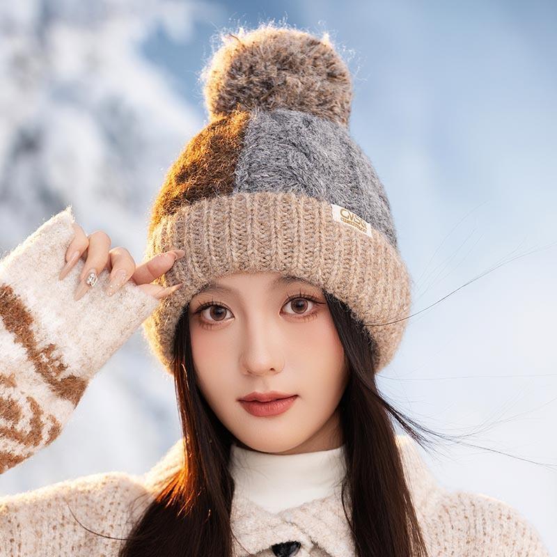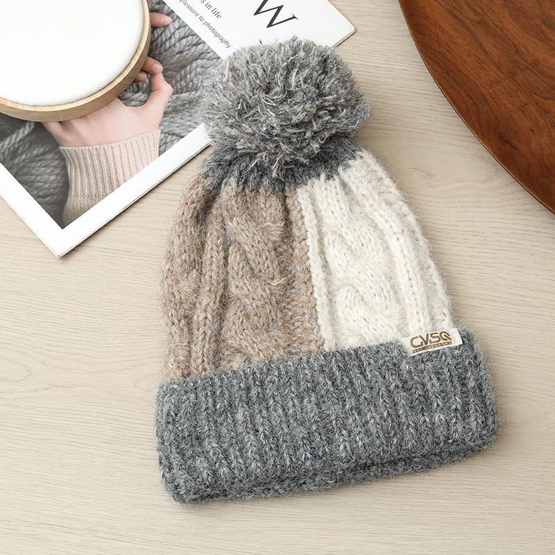Утепленная теплая защита ушей Ветрозащитная шерстяная шапка Осень и зима Цветная вязка в клетку Женская
