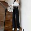 Джинсы женские черные прямые широкие на высокой талии осень-зима 2025, свободные и стройнящие, новые драпирующиеся, моп-модель