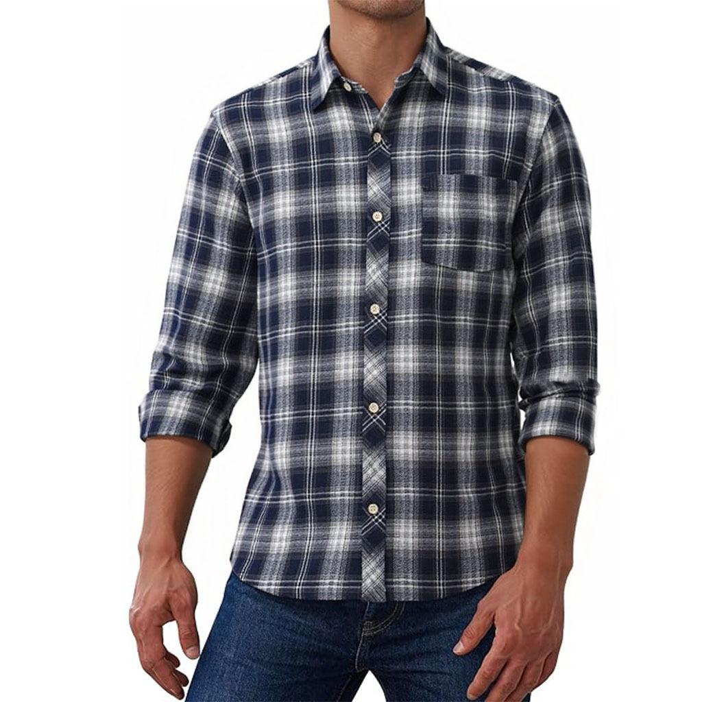 Ретро Классическая Клетчатая Рубашка с Длинным Рукавом Мужская Осенне-Зимняя Свободная Модная Клетчатая Рубашка