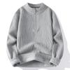 Осенне-зимний утолщенный свободный теплый полосатый вязаный свитер на половину молнии, мужская теплая базовая рубашка