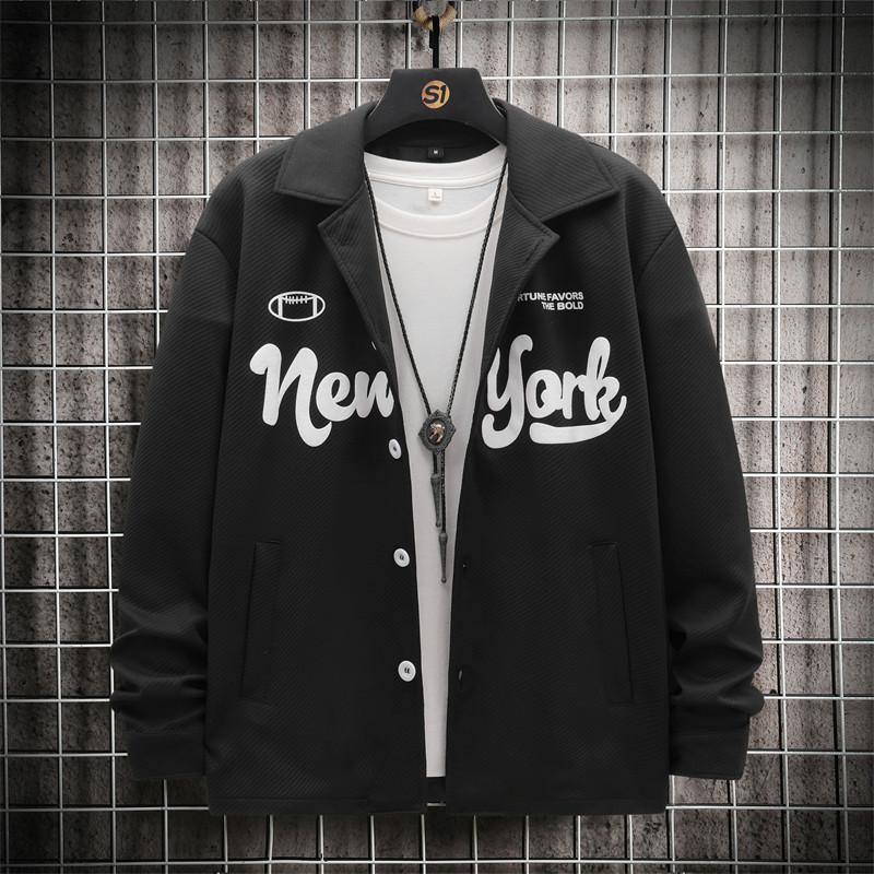 Тонкая куртка мужская, куртка-бейсболка, с напечатанным крупным рисунком, с рукавами из ткани в вертикальную полоску, с накладным карманом