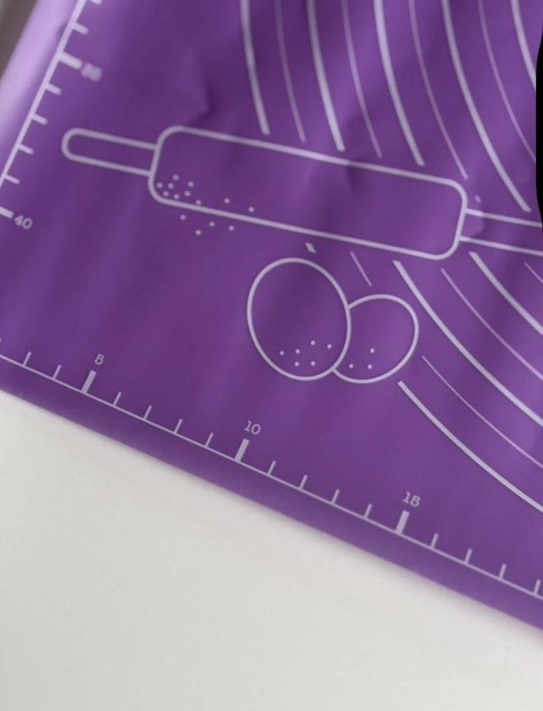 Многофункциональный силиконовый коврик для работы с тестом и выпечки, выполненный в ярком фиолетовом цвете. 🔸Изготовлен из пищевого силикона, что обеспечивает антипригарные свойства и долговечность. Легко моется и хранится (часто сворачивается в рулон). 🔸Главная особенность — нанесенная на поверхность измерительная разметка. Она включает: - Центральные круги: Концентрические круги с указанием диаметра для раскатывания теста под пиццу, коржи или пироги нужного размера. - Линейка-шкала: Измерительная шкала по краям для точного определения размеров прямоугольных заготовок. - Полезные шпаргалки. 🔸Это практичный и удобный инструмент для любого домашнего пекаря, который помогает достичь точности при раскатывании теста. Разметка и шпаргалки делают процесс готовки более простым и упорядоченным. Рекомендую 👍 Ставлю ⭐ ⭐ ⭐ ⭐ ⭐ Спасибо продавцу ❤️ и Joom ❤️