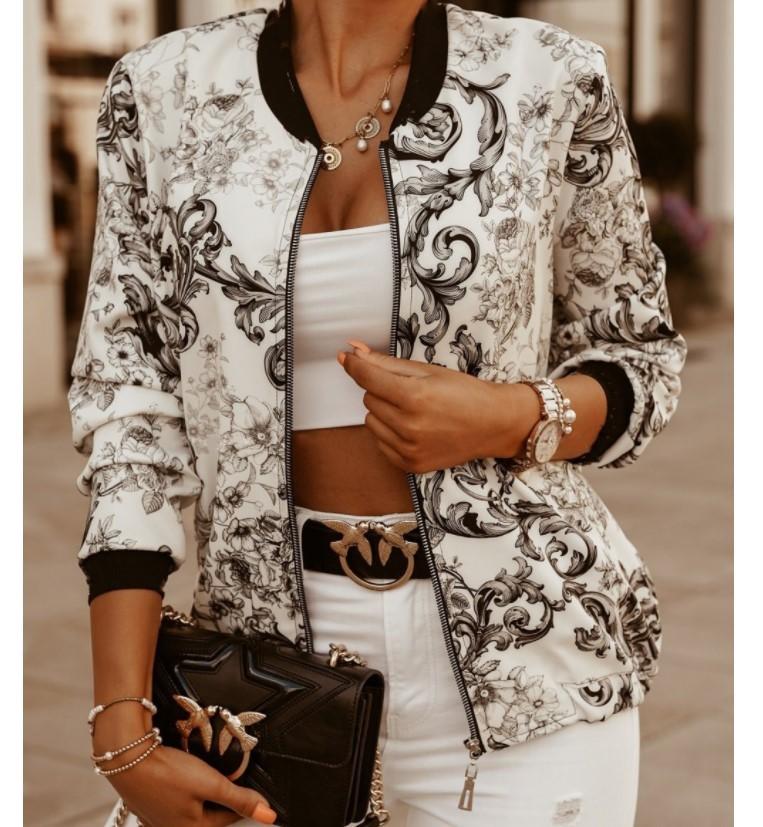 Весенняя приталенная куртка с длинными рукавами и принтом, короткая куртка, женская одежда — купить товар онлайн с бесплатной доставкой по всему миру!
