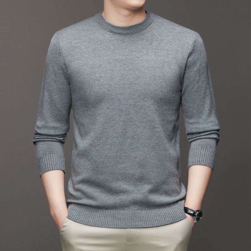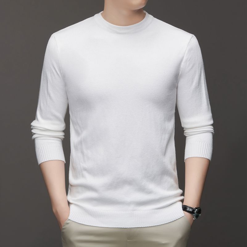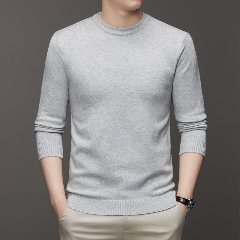 Весенний тонкий однотонный мужской вязаный базовый свитер с круглым вырезом, деловой кэжуал, свободный, простой, облегающий, универсальный, модный