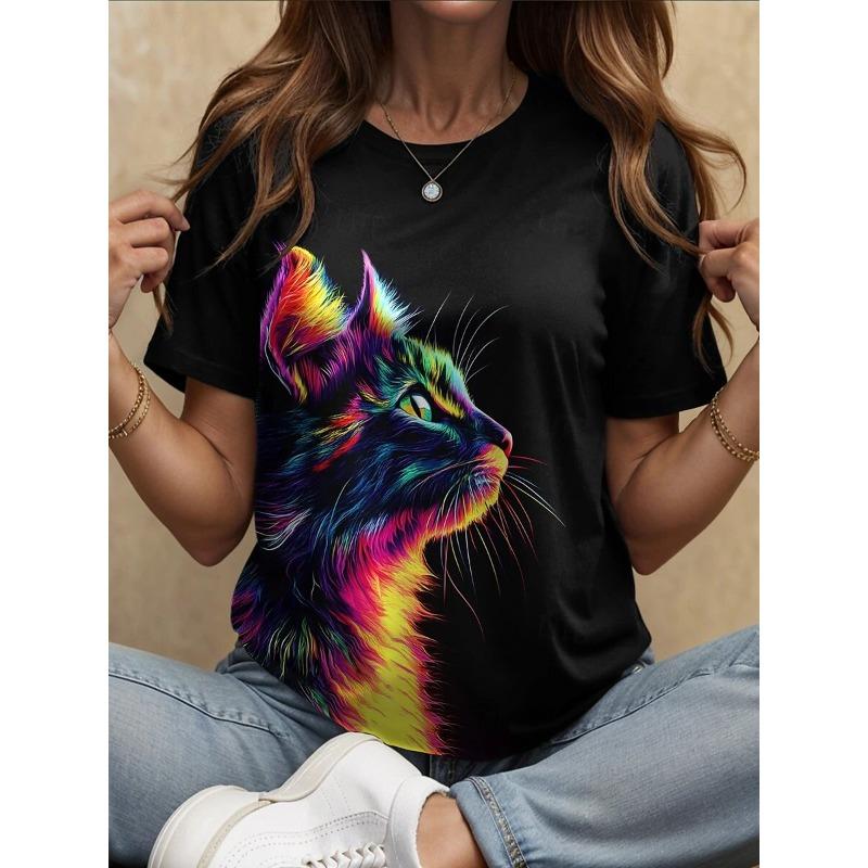Женская футболка с принтом животного кота, в стиле ретро, классическая, с коротким рукавом, с круглым вырезом, женская летняя одежда