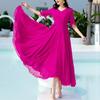 Летняя мода Новое корейское простое элегантное шифоновое платье средней длины Однотонное V-образный вырез Талия Молния Пэчворк Платья с рукавами-бабочками