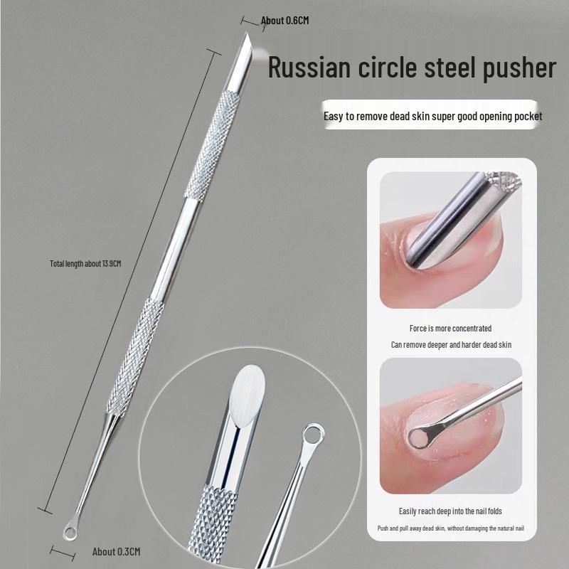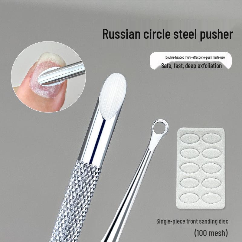 Русский двухсторонний стальной пушер: Средство для удаления омертвевшей кожи и снятия лака, Инструмент для предварительной шлифовки для нейл-арта