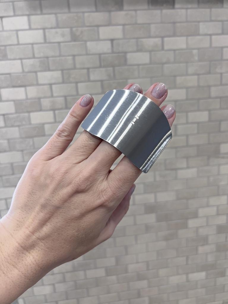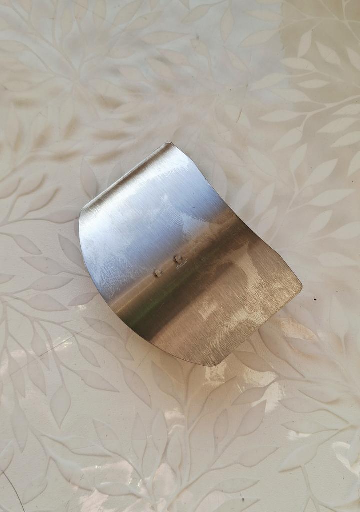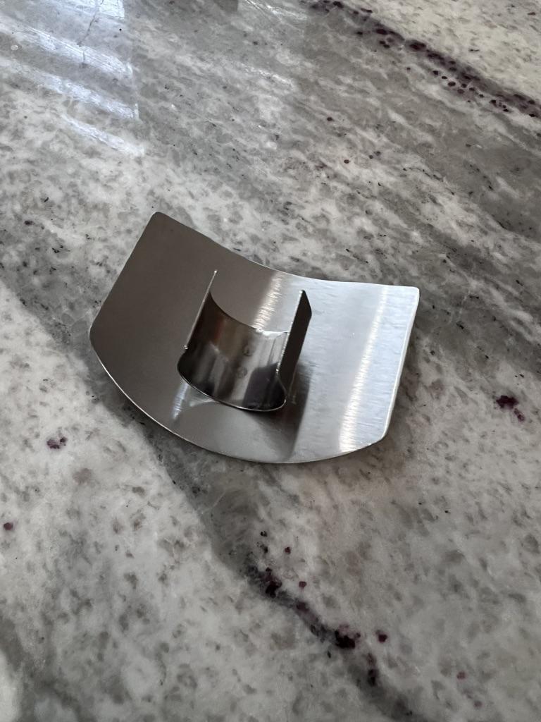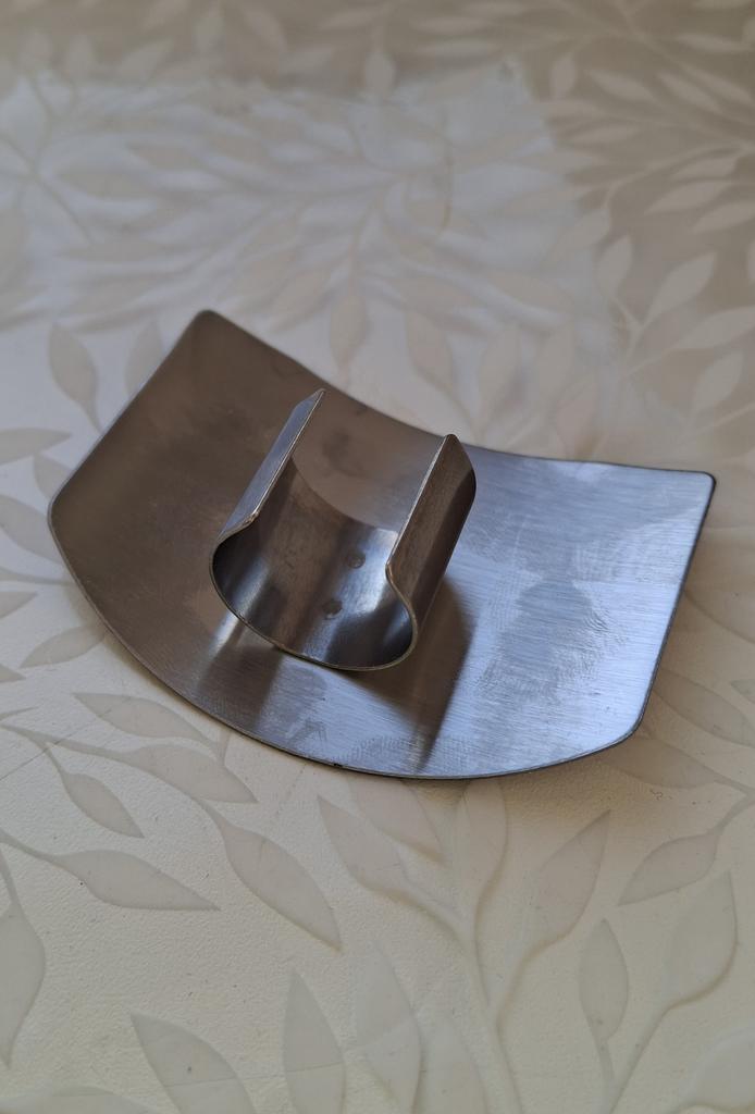 Защита для пальцев. Нашла такую защиту для пальцев. Оказалось, это удобно. Защищает пальцы при нарезке зелени хорошо. Защита выполнена из металлического сплава. Ее удобно держать. Свою функцию выполняет на пятерку. Приехала в пакете, в сборной посылке. Советую.