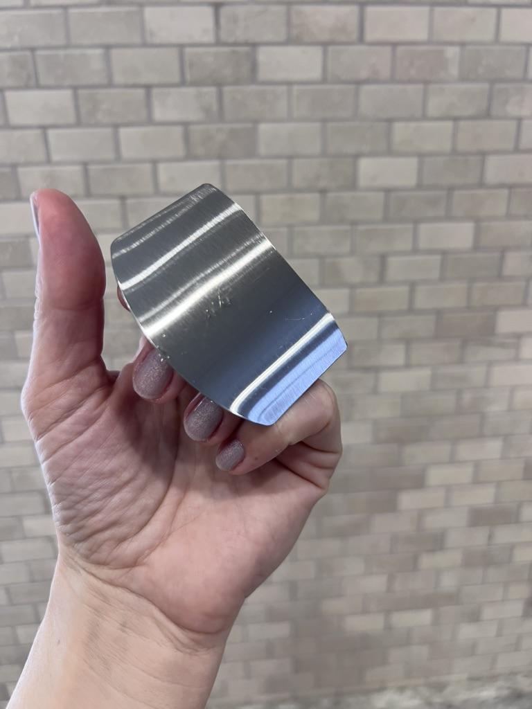 Защита для пальцев из нержавеющей стали. Интересное и полезное изобретение, особенно для нарезки мелкой зелени и других мелких продуктов. Материал прочный и гигиеничный, что делает её долговечной и удобной в уходе. Я попробовала использовать этот аксессуар в работе, но лично мне всё же привычнее и удобнее классический способ нарезки без дополнительной защиты. Тем не менее, это приспособление действительно имеет своё место, особенно если учить ребёнка правильно и безопасно работать ножом, защита помогает избежать порезов и формирует аккуратность с самого начала. ⭐ Продавец упаковал товар в почтовый конверт с пупыркой внутри. ⭐ Трек номер отслеживался до почтового отделения. ⭐ В приложении пришло уведомление о готовности к выдаче заказа. ⭐ Доставка в Петербург заняла 20 дней.