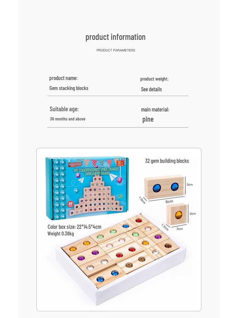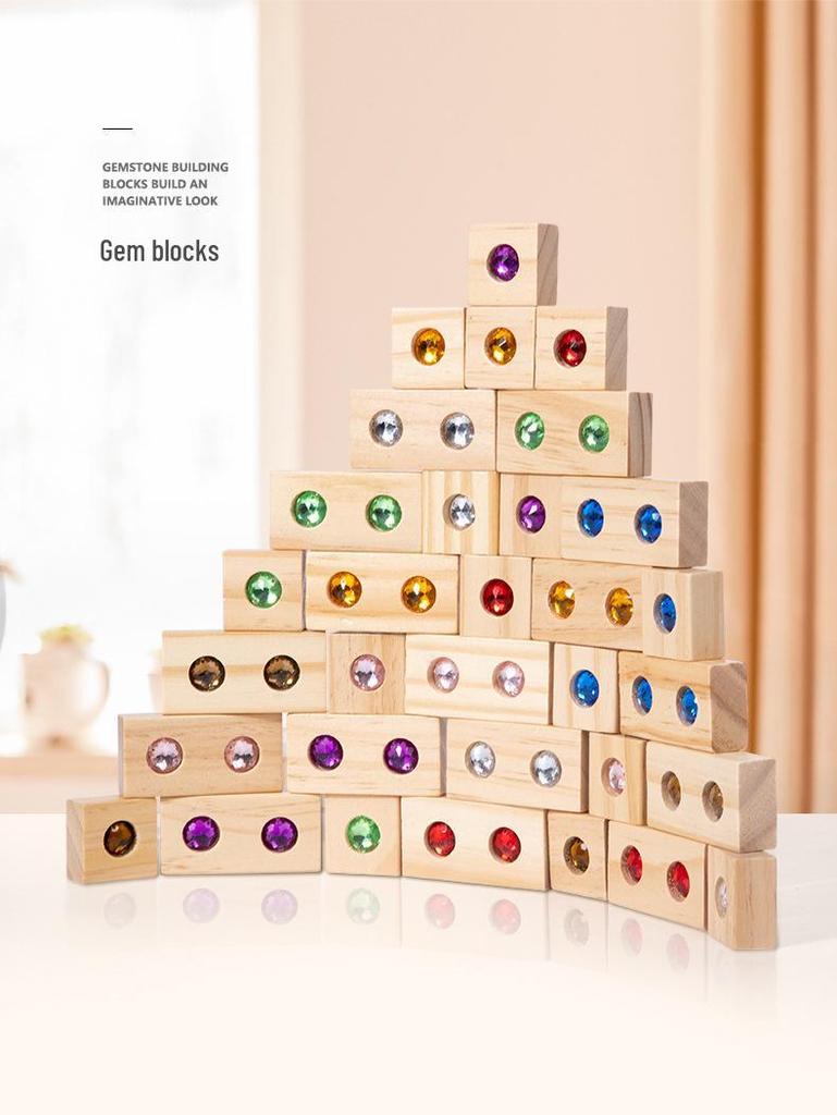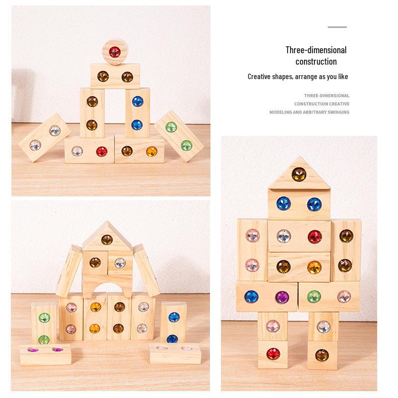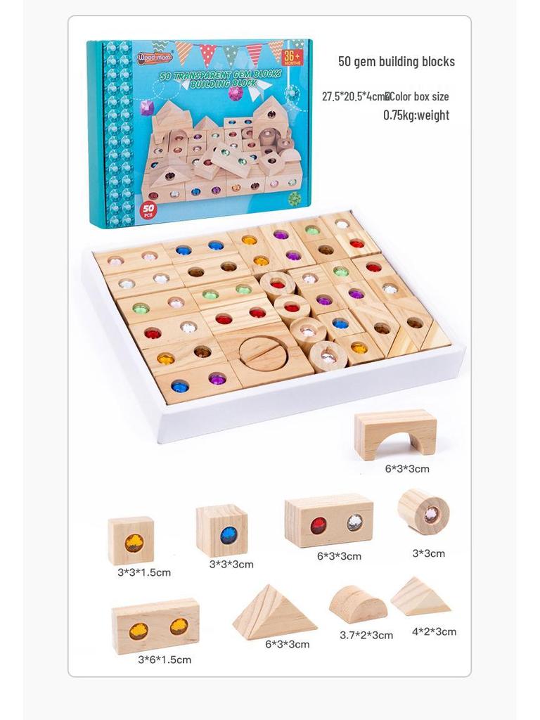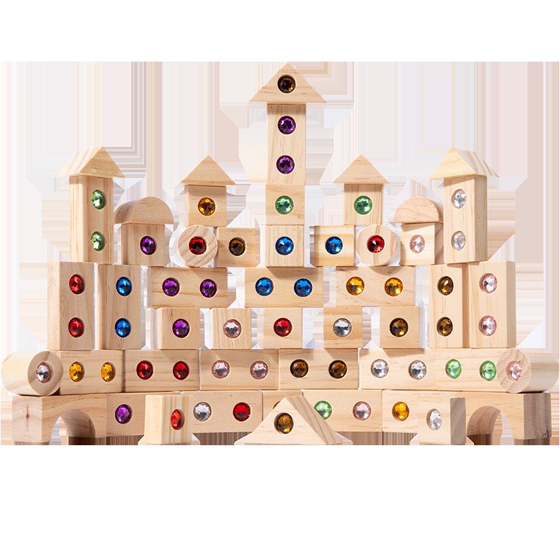 Деревянные акриловые строительные блоки с драгоценными камнями, 50 штук: Интерактивная игра для родителей и детей для раннего развития и строительства замка