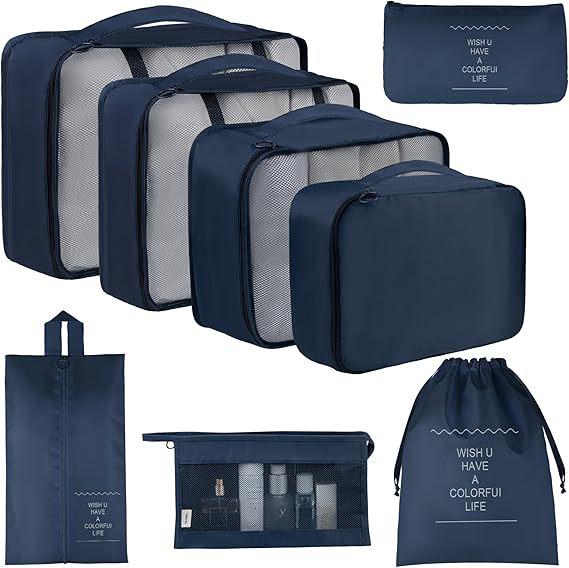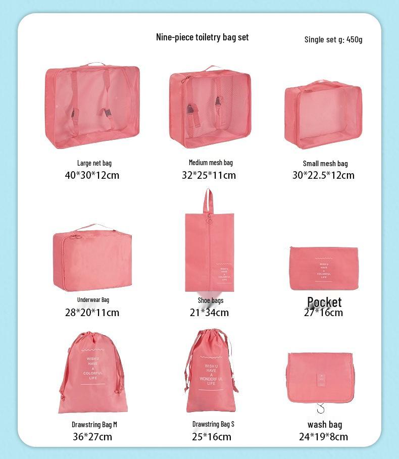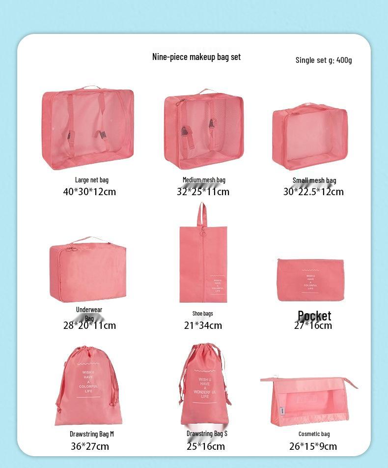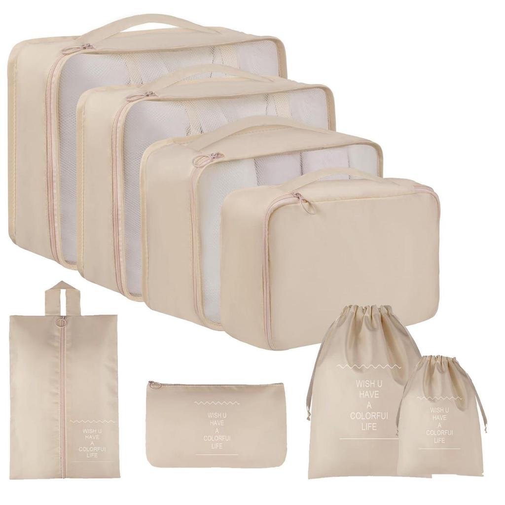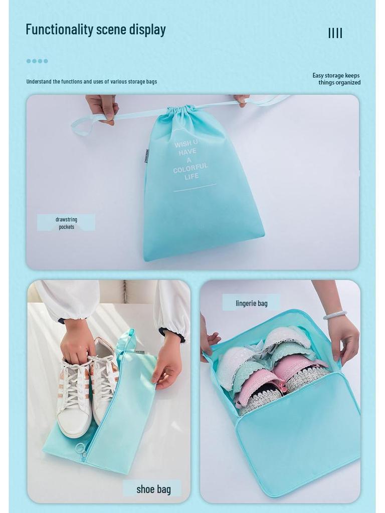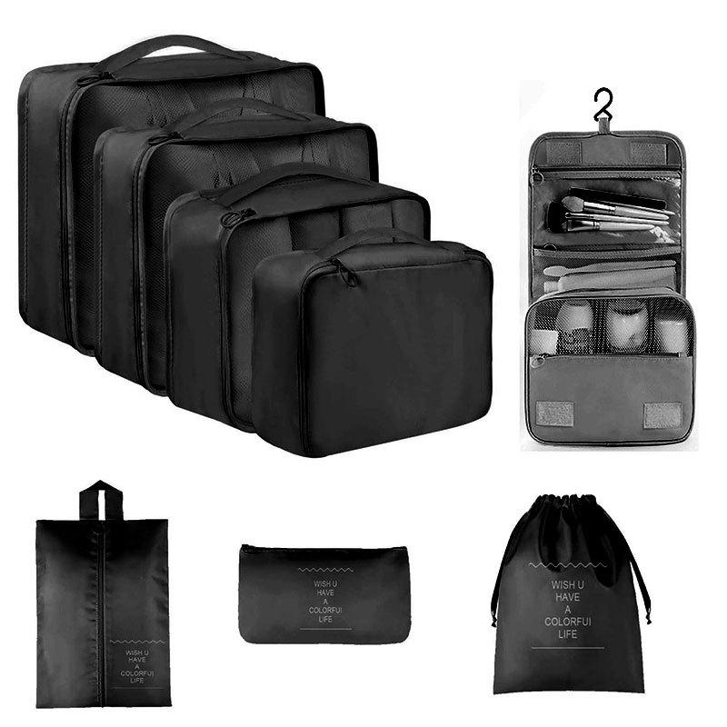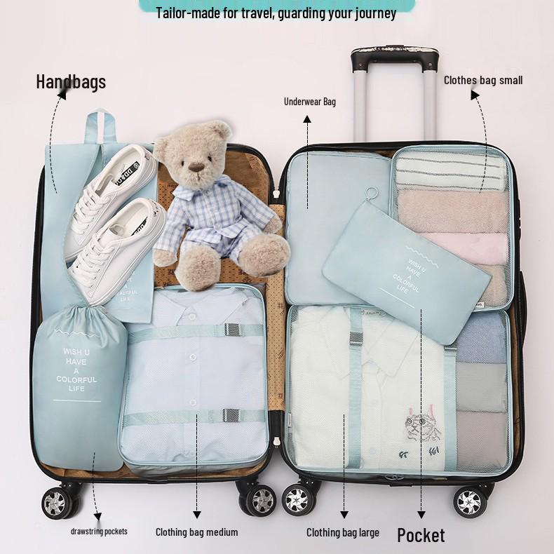 Набор для хранения в путешествиях из семи предметов: Косметичка, Органайзер для одежды, нижнего белья и Складной подпакет