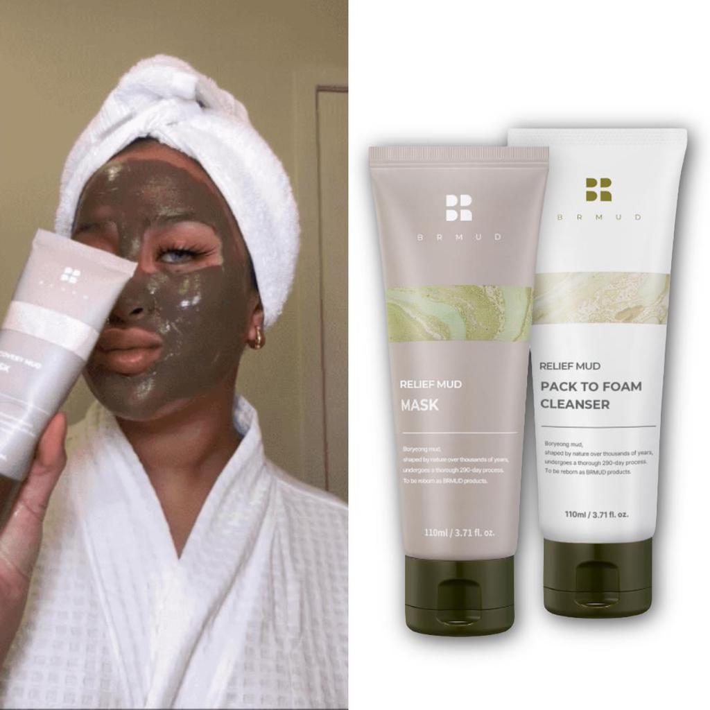 • **Очищающее средство «Грязевая маска-пенка»**: Ежедневное средство 2-в-1, которое превращается из грязевой маски в пенящийся гель для умывания. С 3% ила и натуральными экстрактами, он мягко удаляет остатки макияжа и загрязнения, сохраняя кожу увлажненной..
