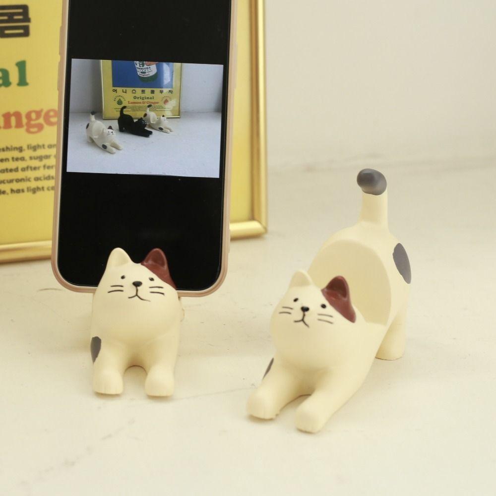 Подставка для мобильного телефона в виде кошки, смоляная кукла, кронштейн для мобильного телефона, держатель для телефона в виде кошки, настольные украшения