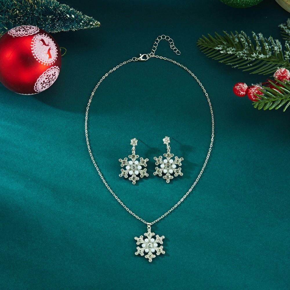 Zinc Zinc Zinc Alloy Xmas Dangle Earrings Colorful Snowflake Necklace Fashion Christmas Jewelry Set Women