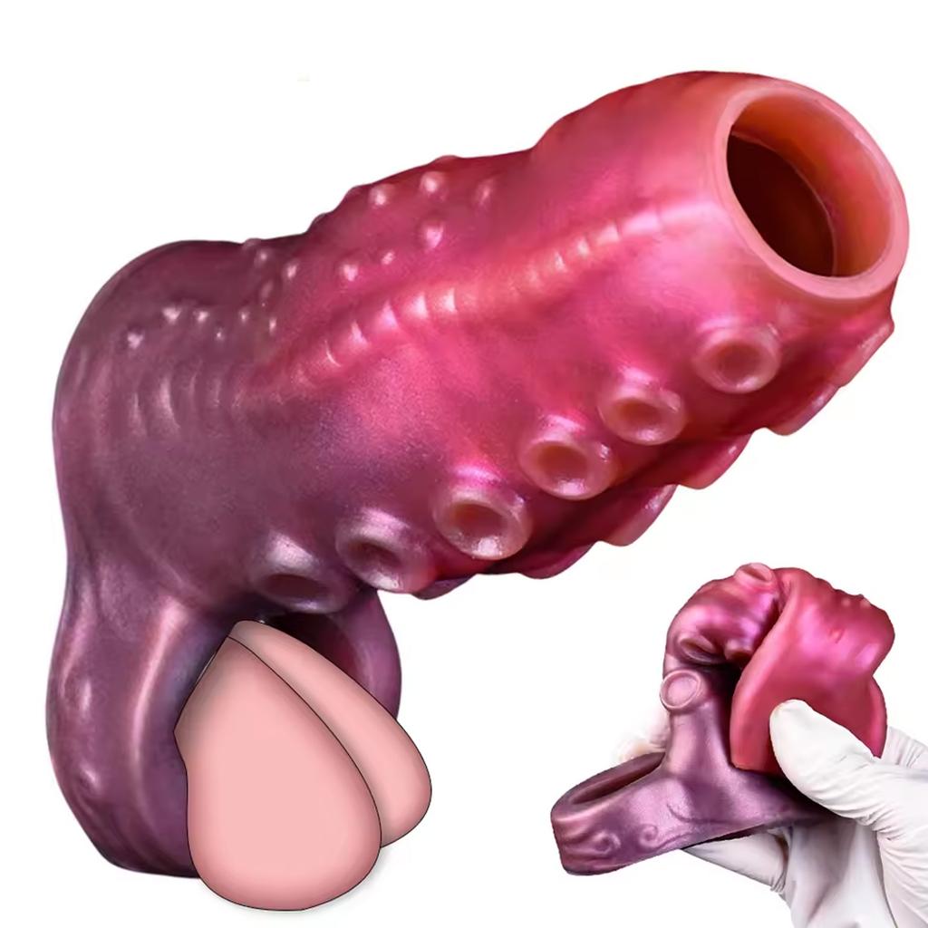Рукав для члена с открытой головкой Реалистичные присоски щупальца осьминога Чехол Удлинитель Анальный Вагинальный стимулятор Увеличитель пениса для большего