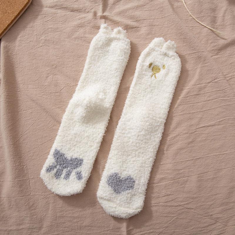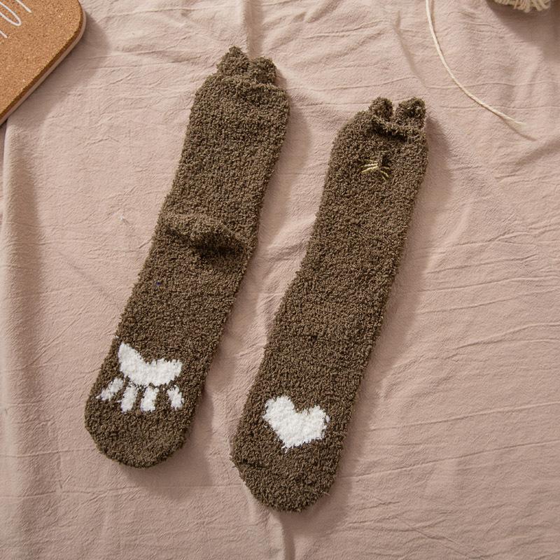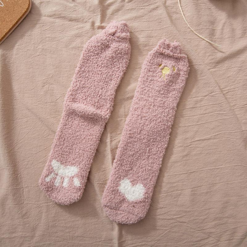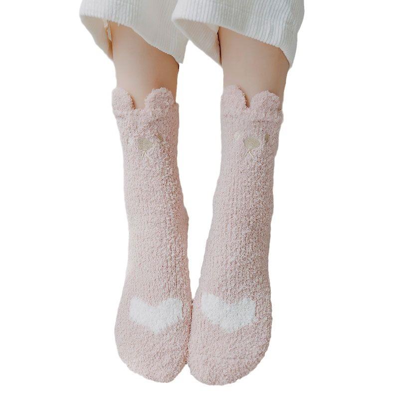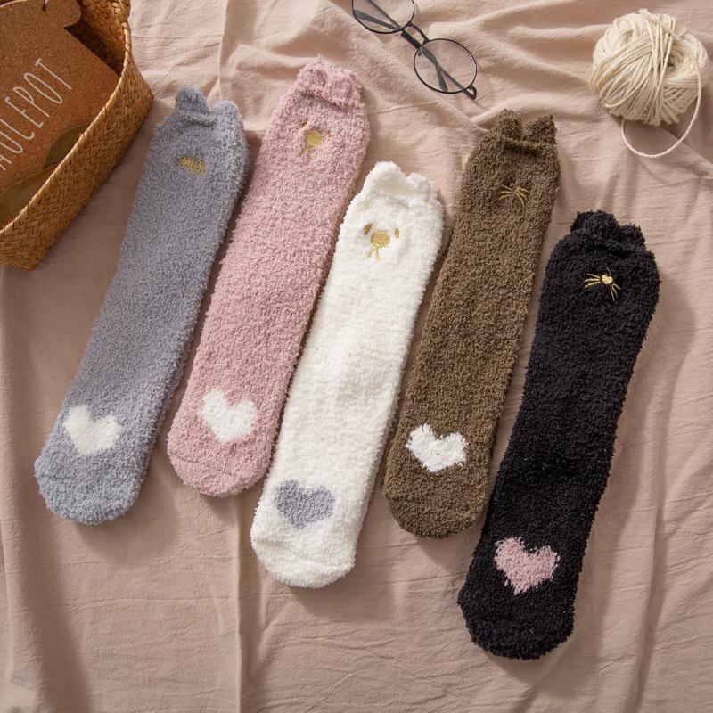 Носки из кораллового флиса для женщин, осенне-зимние носки до середины икры, утолщенные напольные носки с флисовой подкладкой, домашние носки для сна, теплые зимние послеродовые носки
