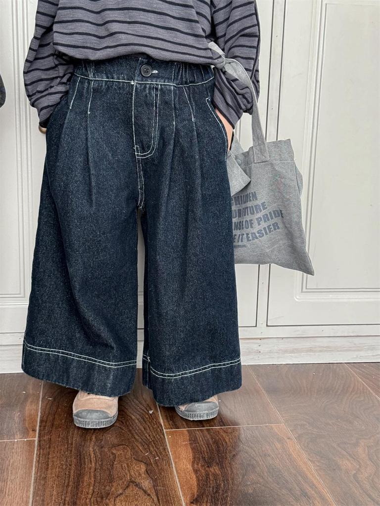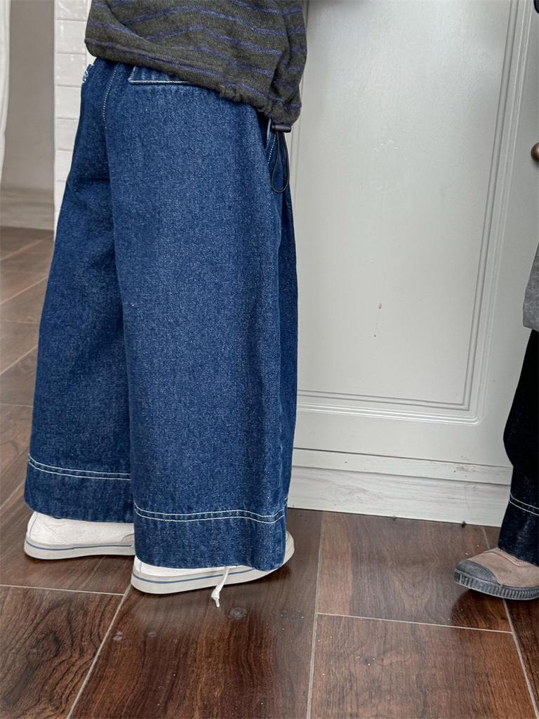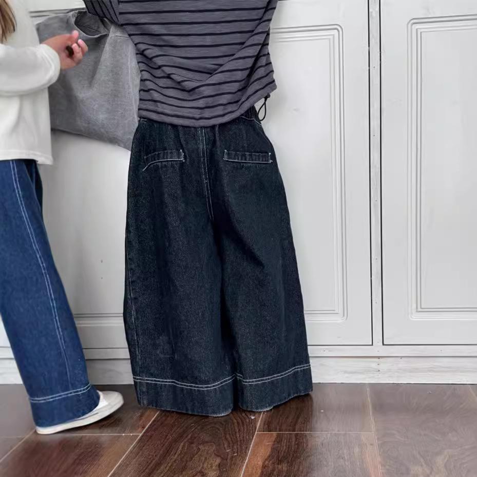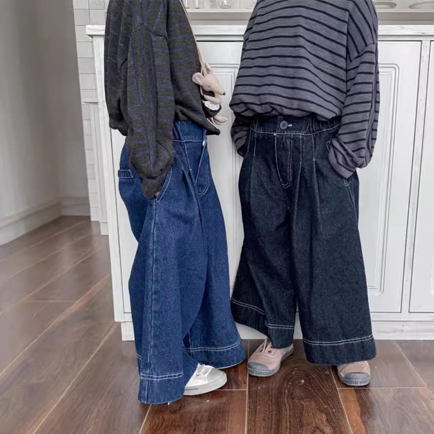 Джинсы детские осенние однотонные Jiaye Tongpin 2025 - Унисекс, свободные, прямого кроя, с широкими штанинами