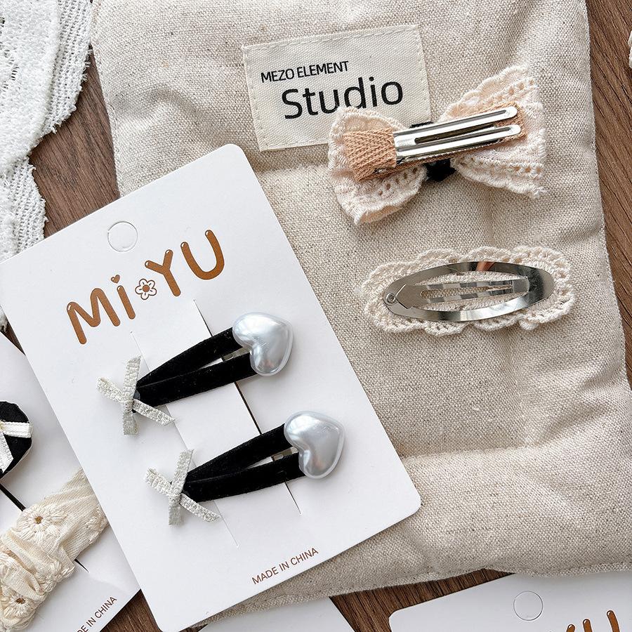 Элегантные Простые Кружевные Банты Детские Заколки для Волос Мода Корейский Стиль Девочки Студентки Заколка Головной Убор Черный Белый Детские Аксессуары