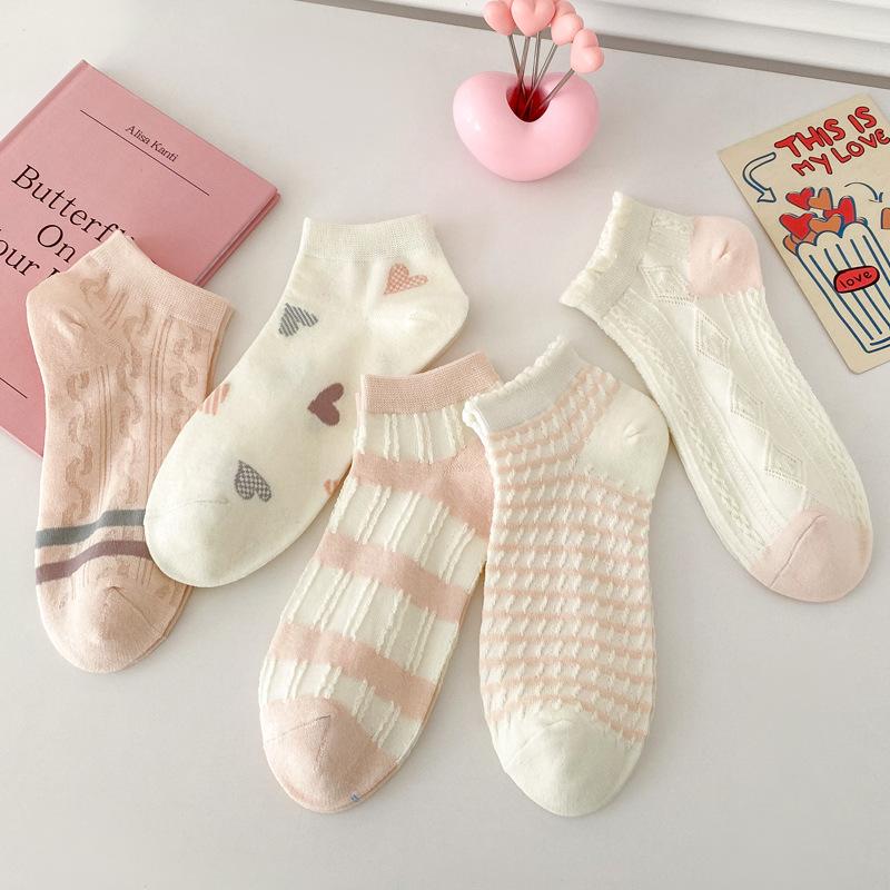 5/10 пар женских носков весенне-летней оранжево-розовой цветовой гаммы, женские носки, дышащие, влагоотводящие, академического стиля, женские носки-следки, короткие носки