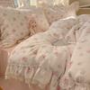 Комплект постельного белья из четырех предметов с двойной нитью, кружевной в принцессном стиле, приятный для кожи, дышащий, стиранные простыни, пододеяльник, наволочка