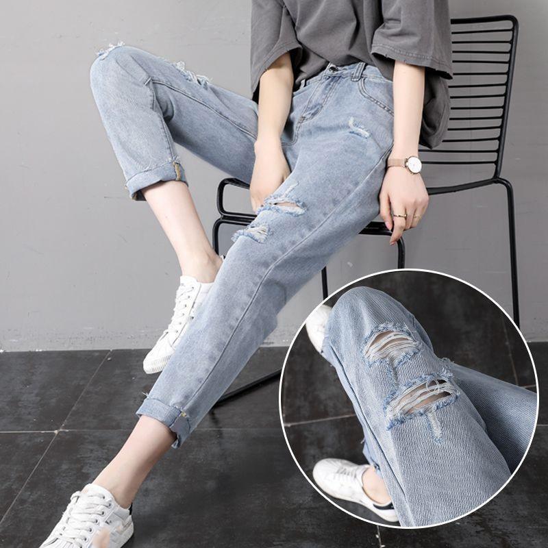 Рваные джинсы-девятиточки женские свободные летние тонкие с высокой посадкой прямые брюки — купить товар онлайн с бесплатной доставкой по всему миру!
