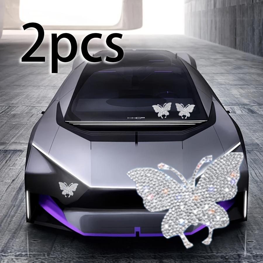 2 шт. Блестящие наклейки на автомобиль в виде бабочек, ПВХ, наружные аксессуары с украшением стразами