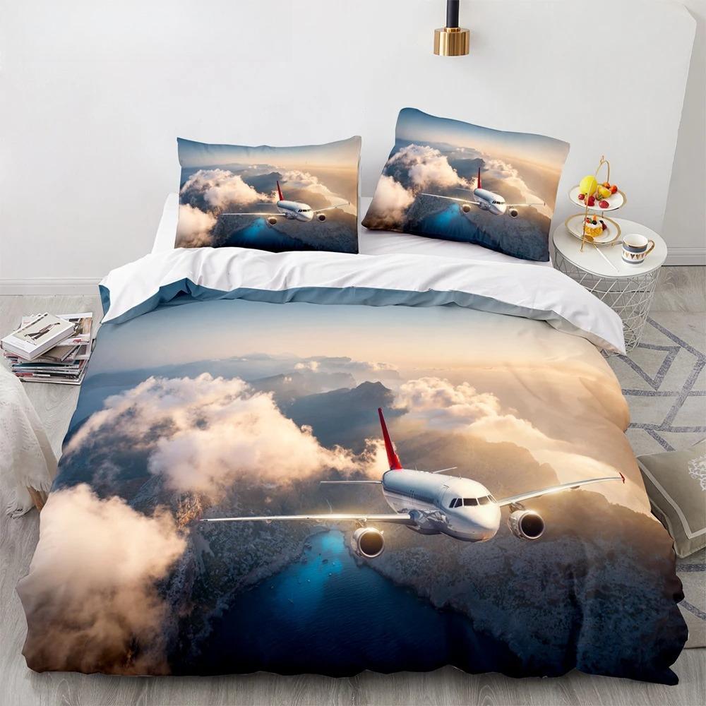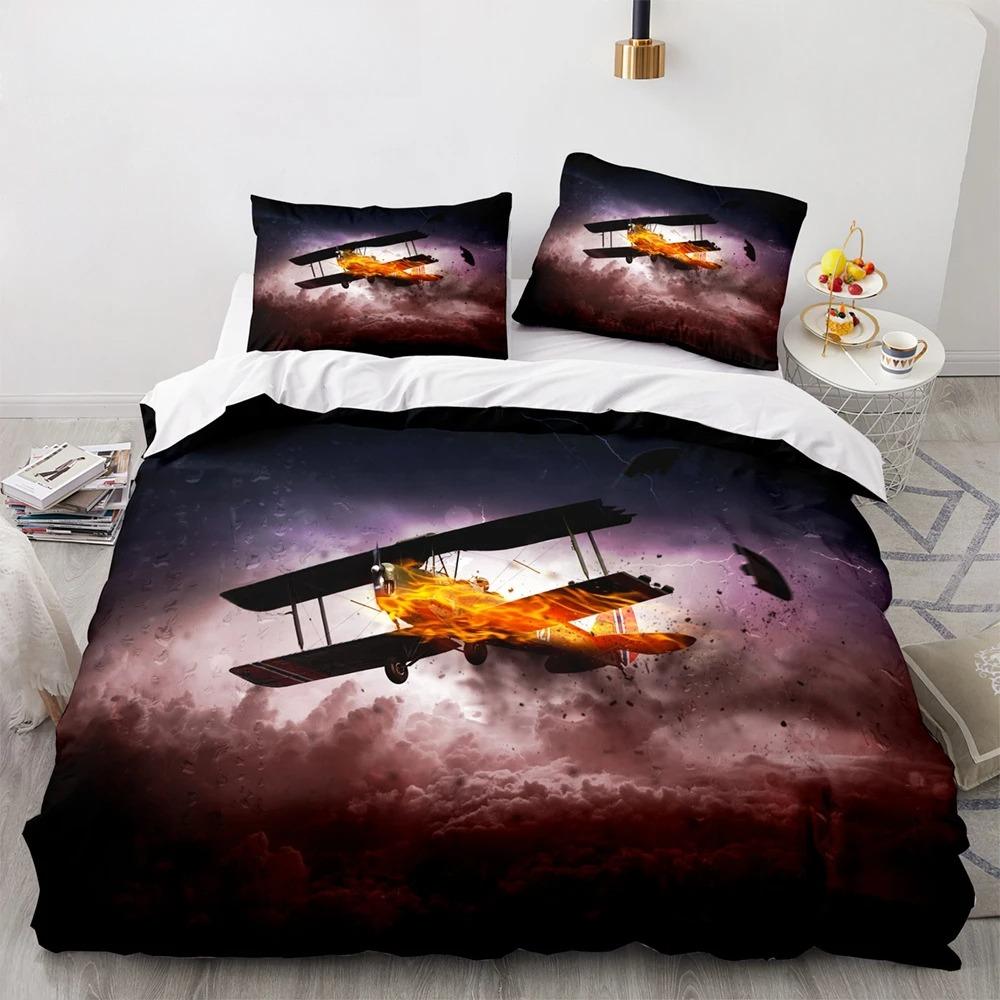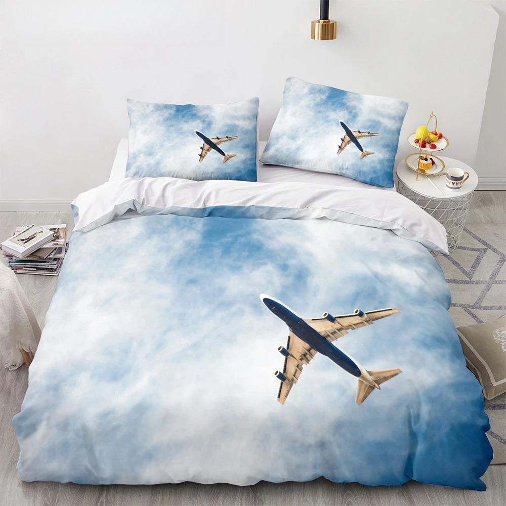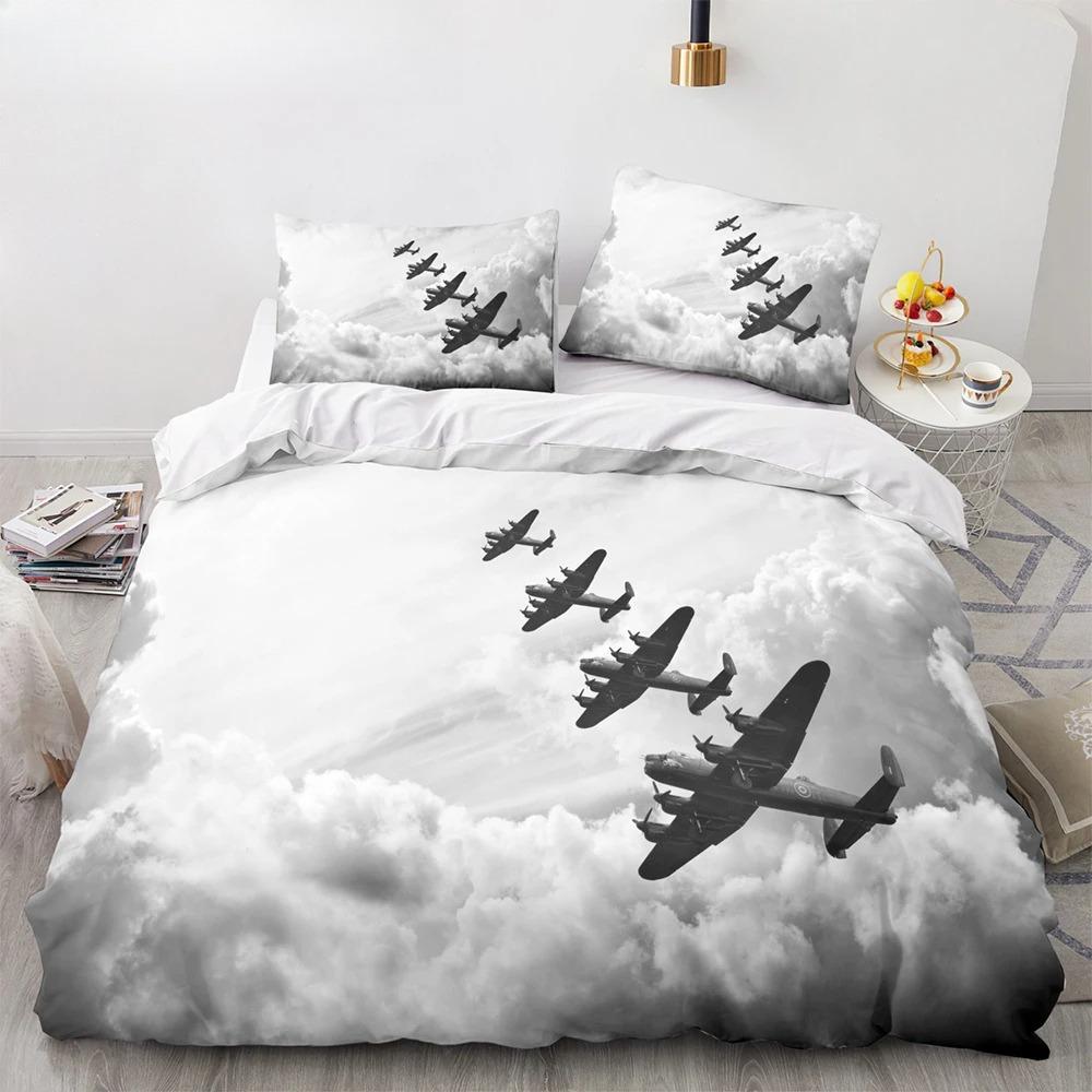 Пододеяльник Airplane King Queen Full Винтажный истребитель Постельный комплект для детей Подростков Взрослых Небо Облака Серый 2/3 шт Мягкий Чехол для одеяла