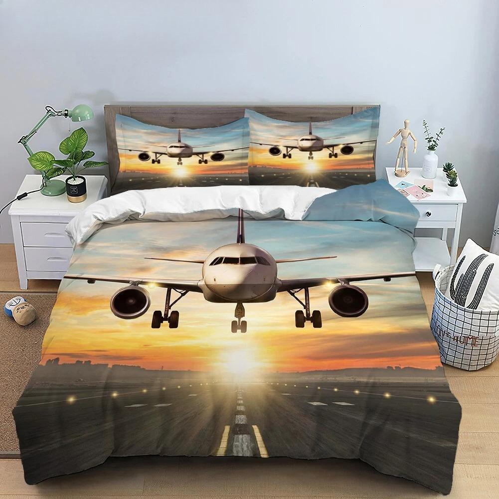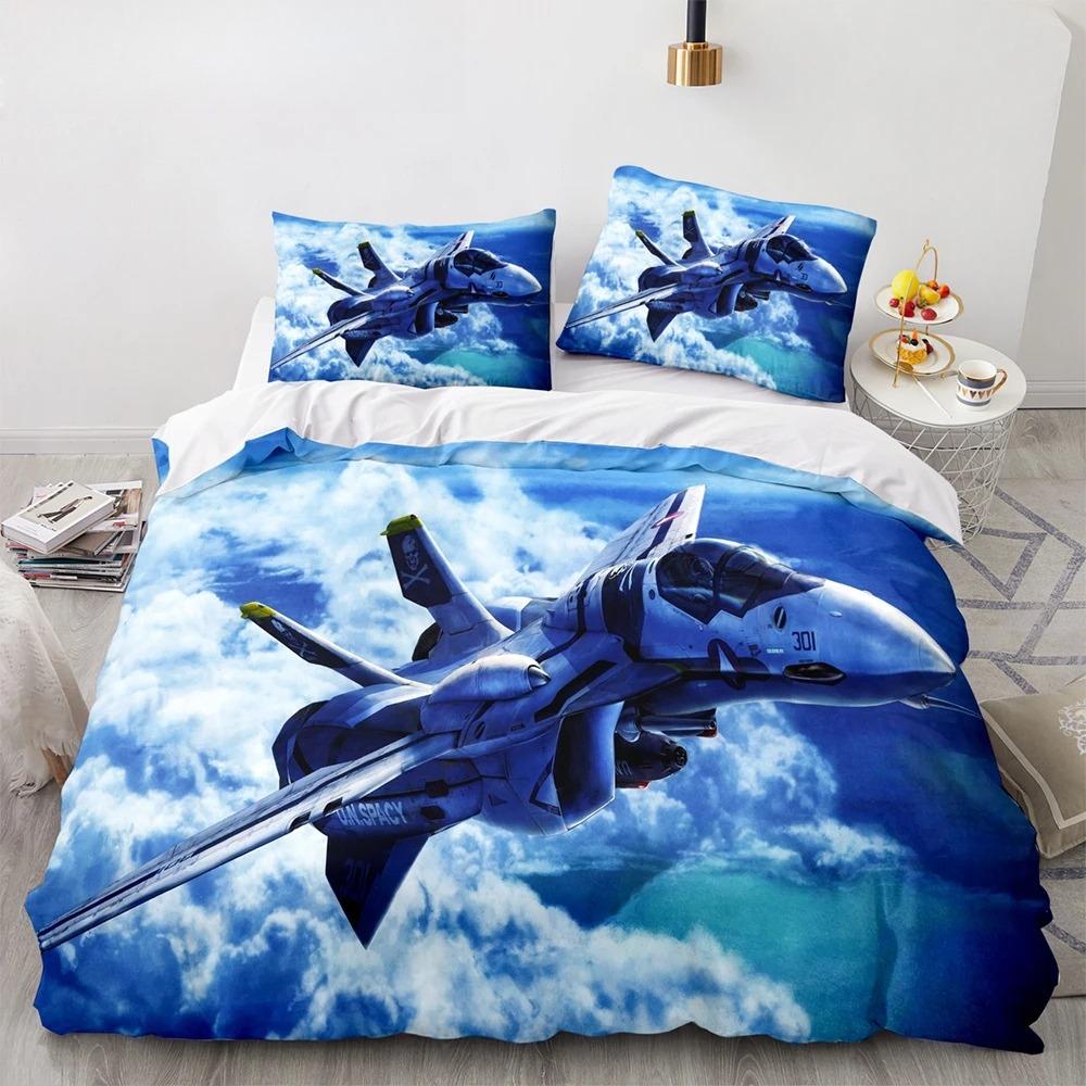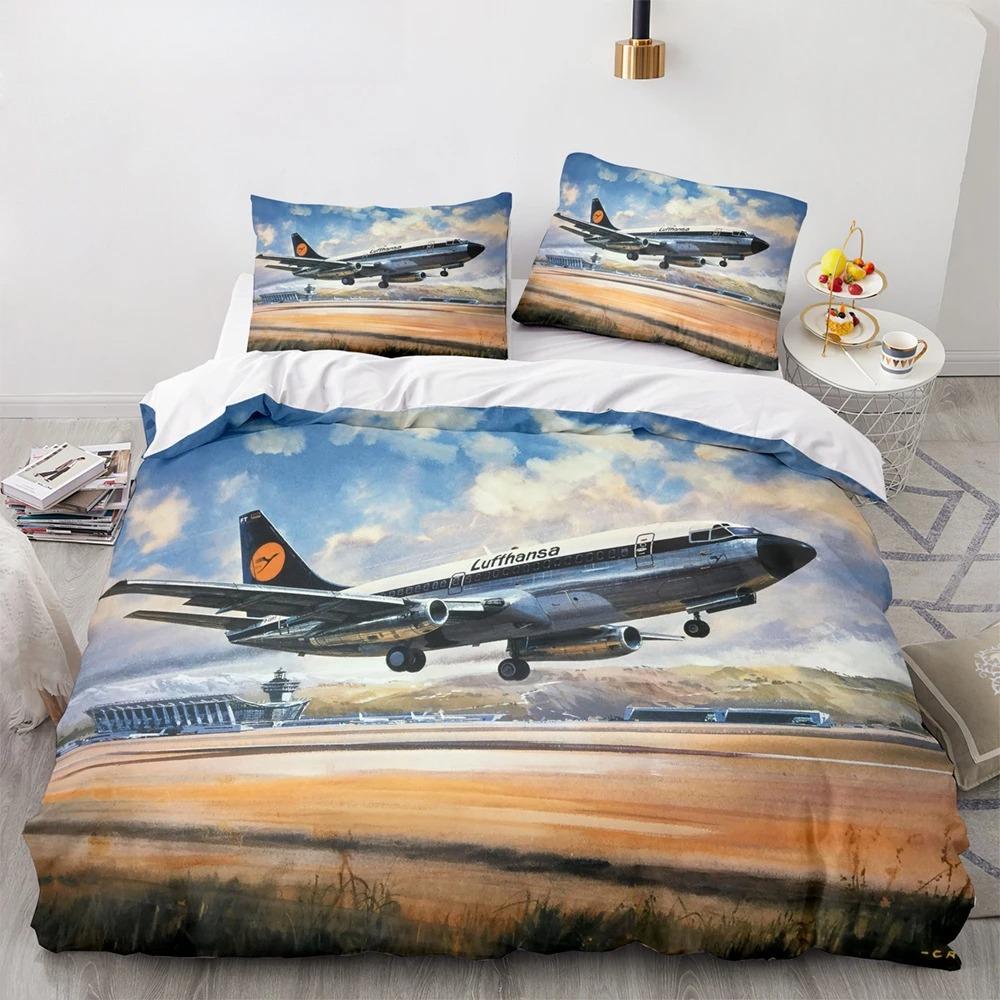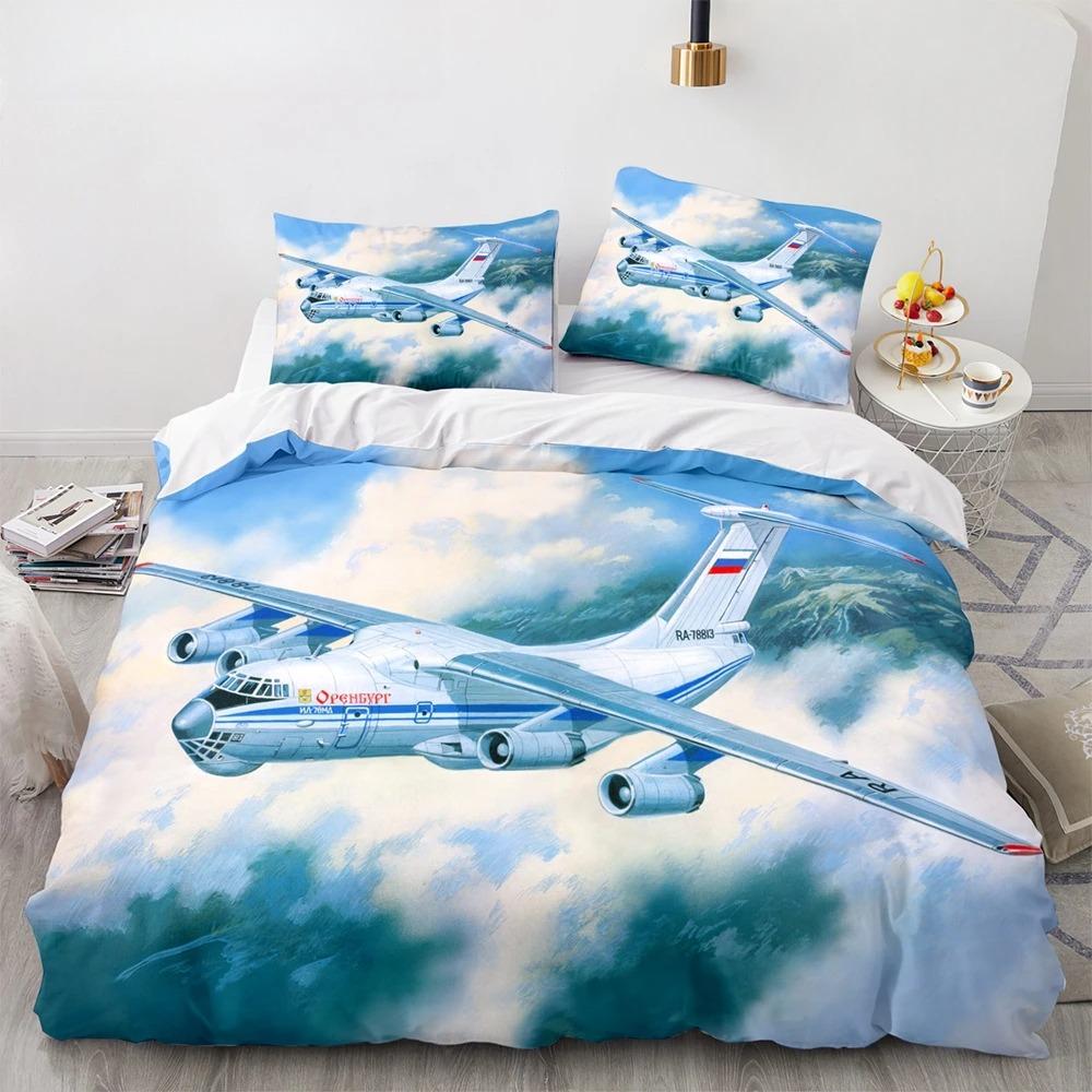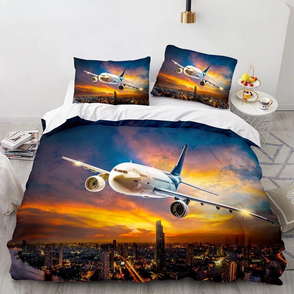 Пододеяльник Airplane King Queen Full Винтажный истребитель Постельный комплект для детей Подростков Взрослых Небо Облака Серый 2/3 шт Мягкий Чехол для одеяла