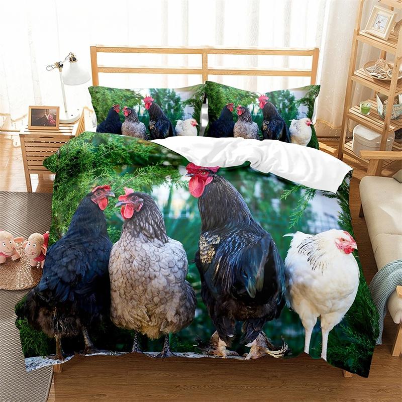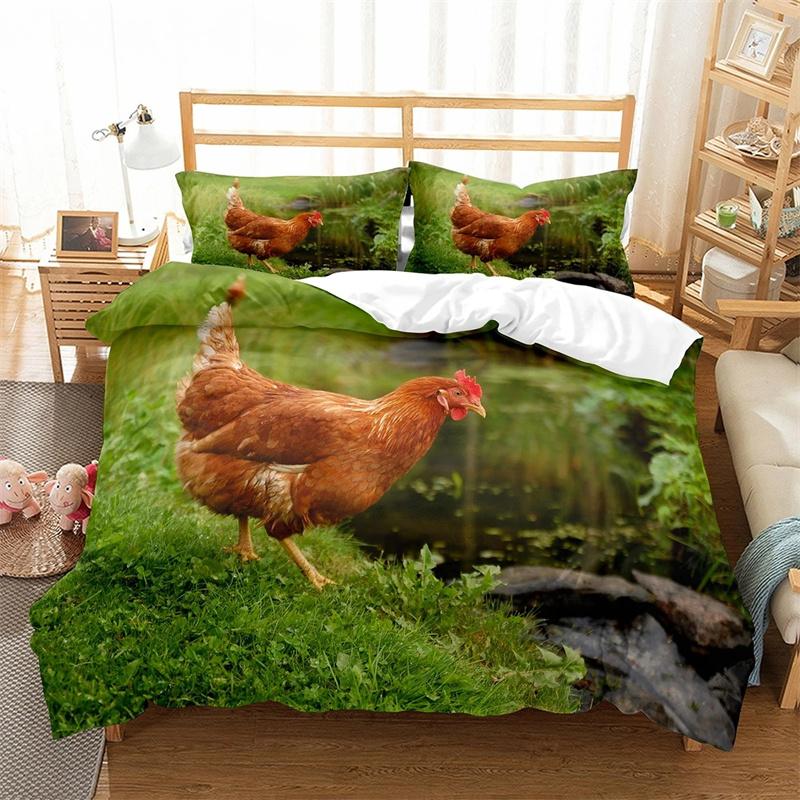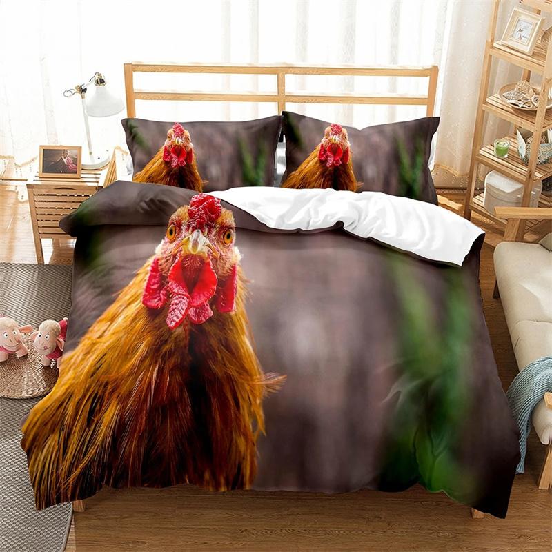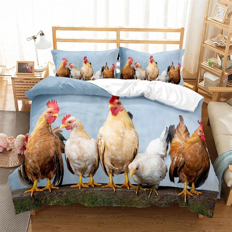 Пододеяльник с изображением фермерской курицы King Queen, комплект постельного белья с изображением милого цыпленка, семейное одеяло с изображением животных, 2/3 предмета из полиэстера, покрывало