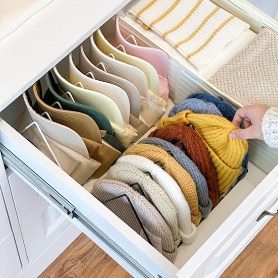 Эту стойку можно расположить горизонтально или вертикально в шкафах, ящиках или шкафах для хранения, гибко адаптируя к различным условиям для удобной и компактной организации шляп.