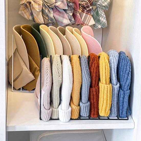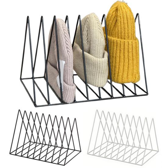 Изготовленная из высококачественного металла, эта стойка не только устойчива и прочна, но также устойчива к ржавчине и долговечна.. Он выдерживает большие нагрузки без деформации, гарантируя долговечное использование.. Эта стойка с 9 отделениями для хранения разработана специально для бейсболок и вязаных шапок, предотвращая их сдавливание или деформацию в переполненных ящиках.