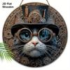 Ретро Деревянная Табличка с Рисунком Крутого Кота - Уникальные Настенные Фронтоны - Идеально для Входной Двери, Двора, Настенного Декора