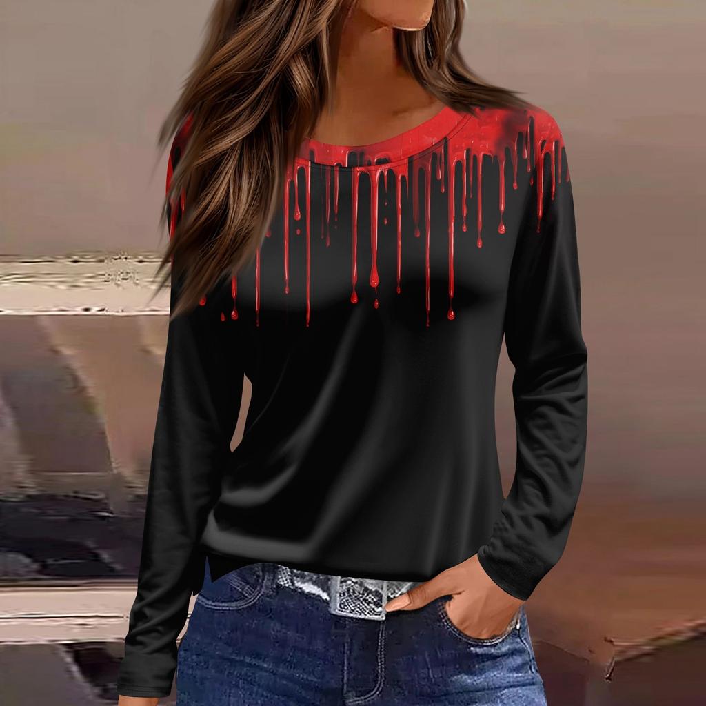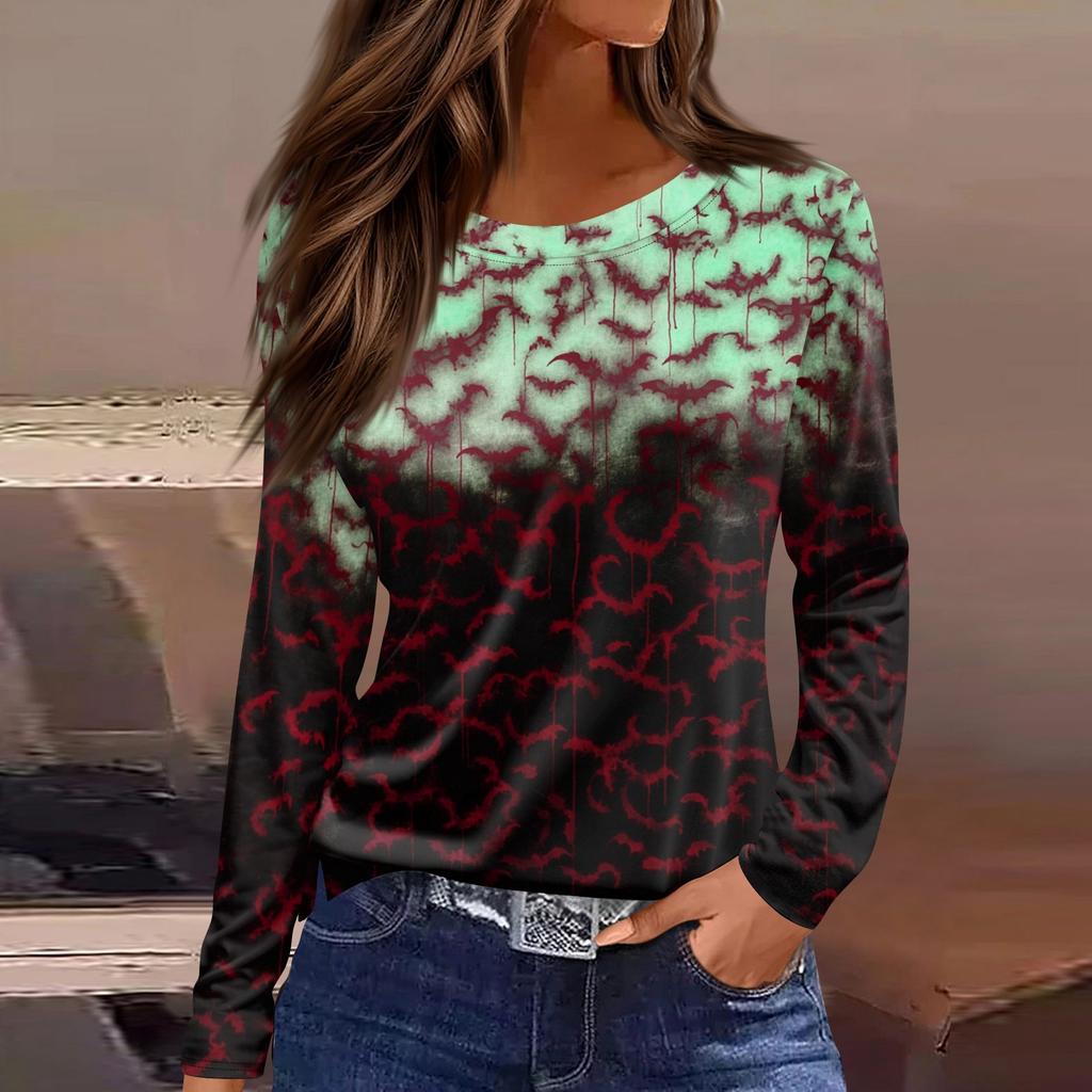 Женская модная повседневная блузка с длинным рукавом и круглым вырезом, пуловер с принтом