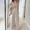Комплекты из двух предметов для женщин: топ-рубашка с V-образным вырезом на пуговицах и брюки с широкими штанинами, свободные спортивные костюмы