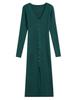 Платье миди с V-образным вырезом, разрезом, однобортное, вязаное, облегающее