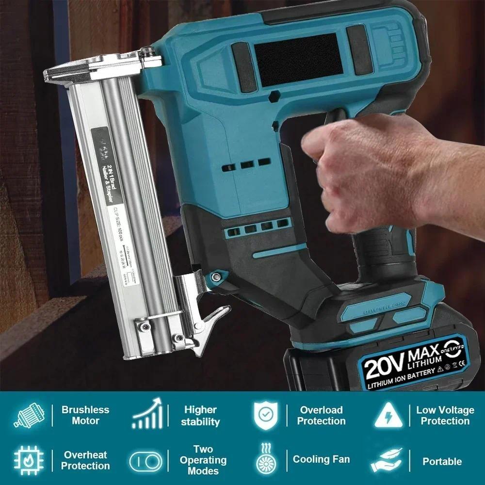 2 в 1 Бесщеточный электрический пневматический гвоздезабивной пистолет, беспроводной портативный гвоздезабивной степлер, каркасный гвоздезабивной инструмент для деревообработки