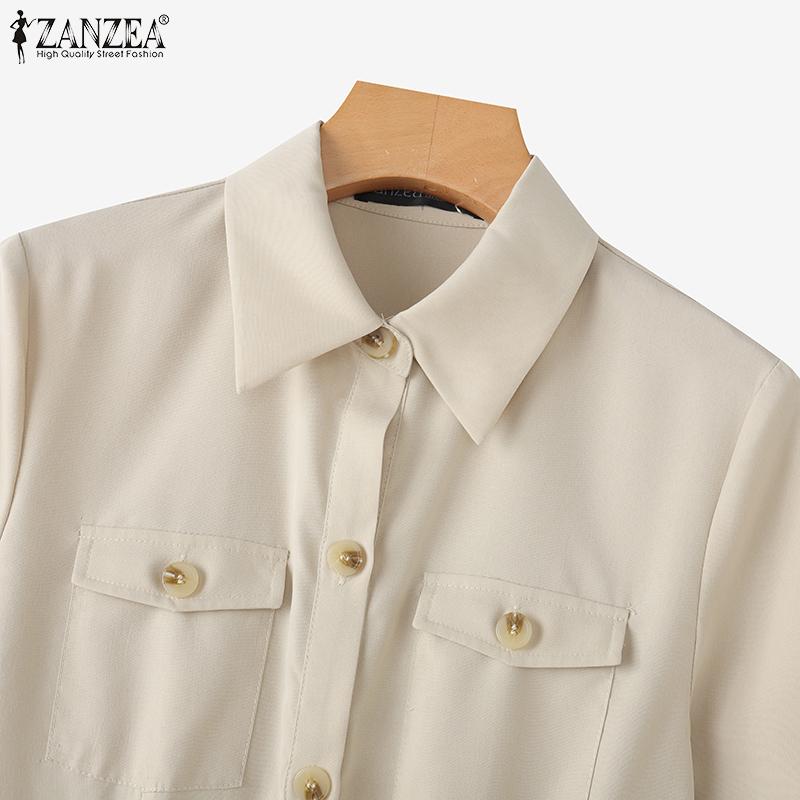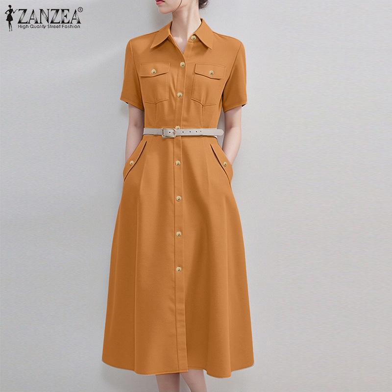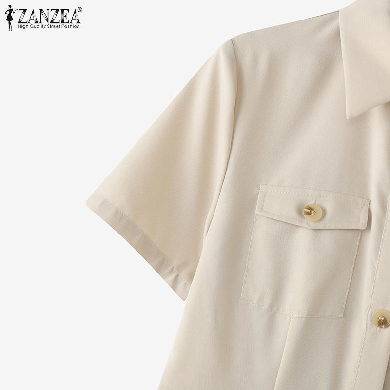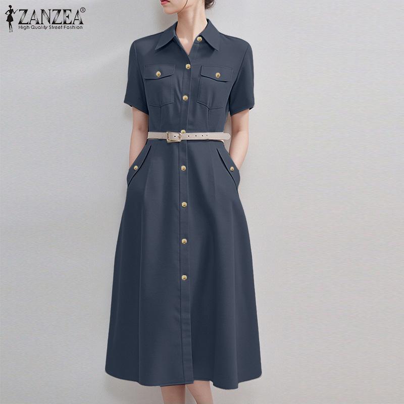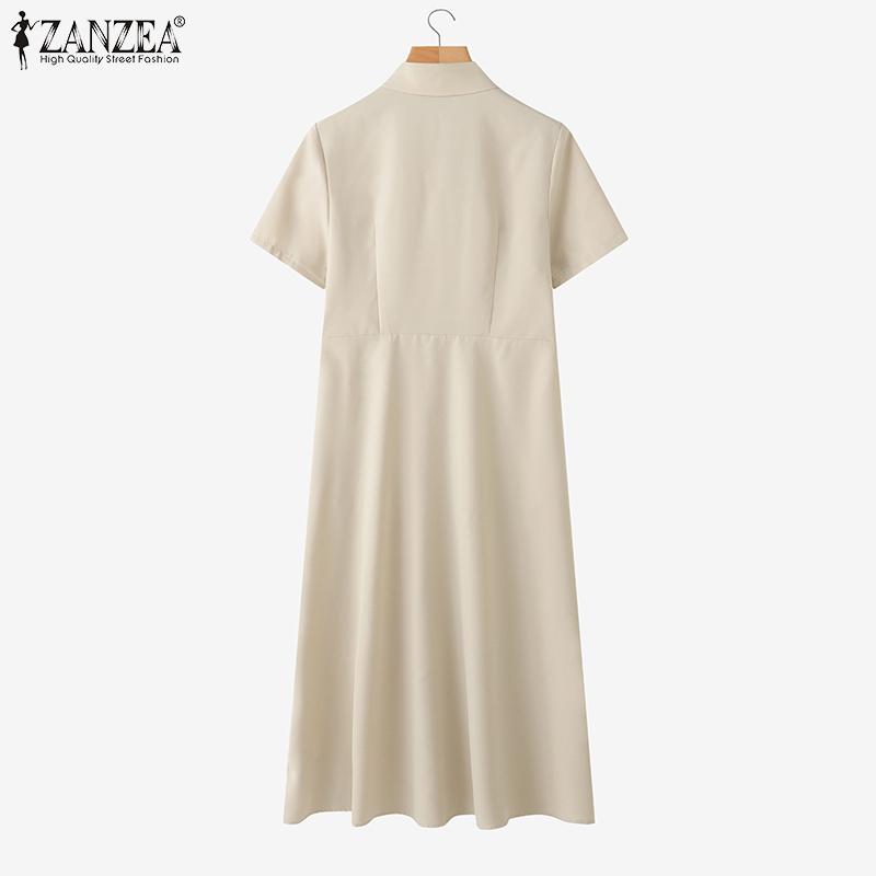 ZANZEA Женское повседневное свободное платье-рубашка с отложным воротником и коротким рукавом