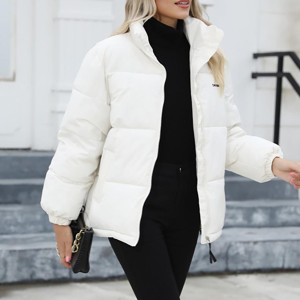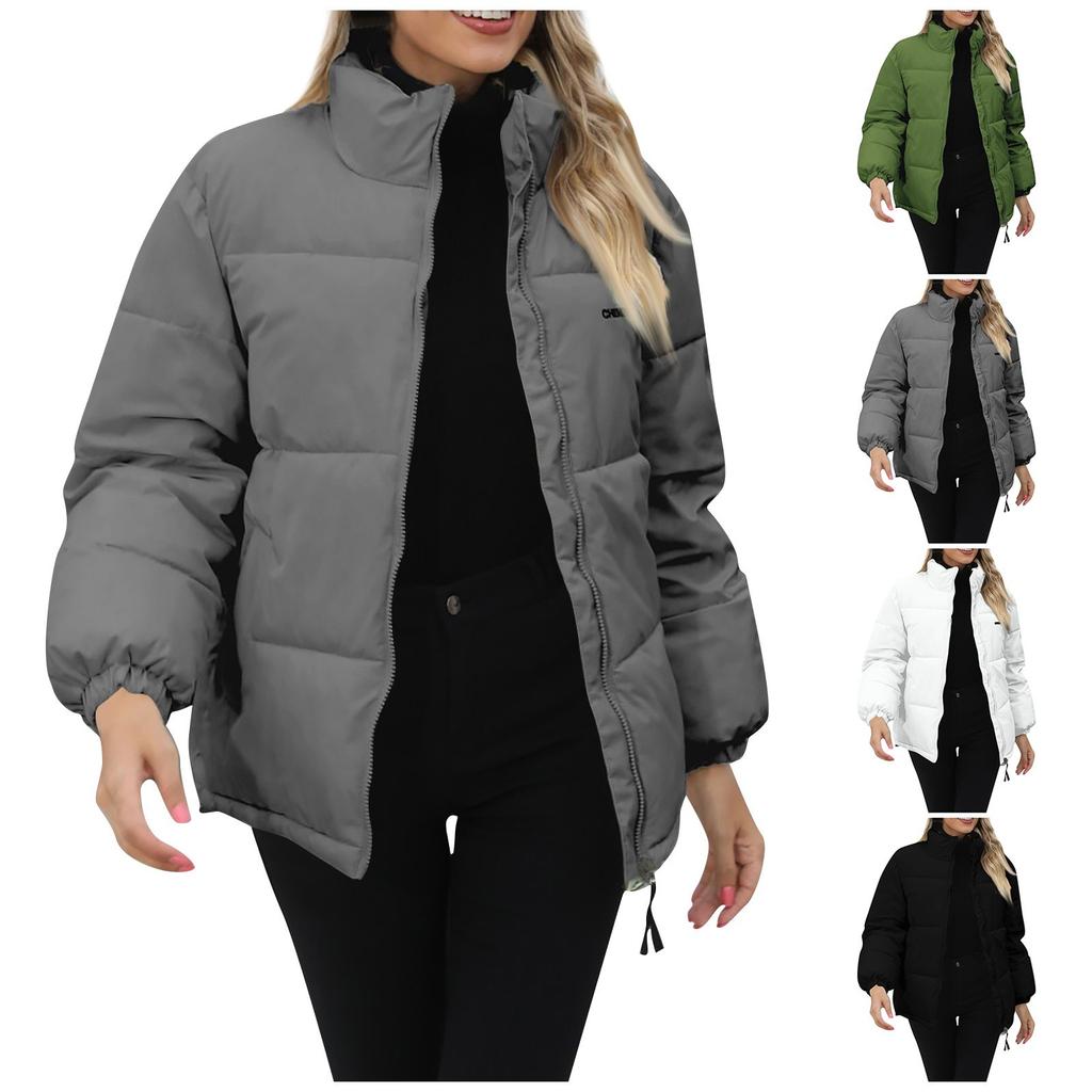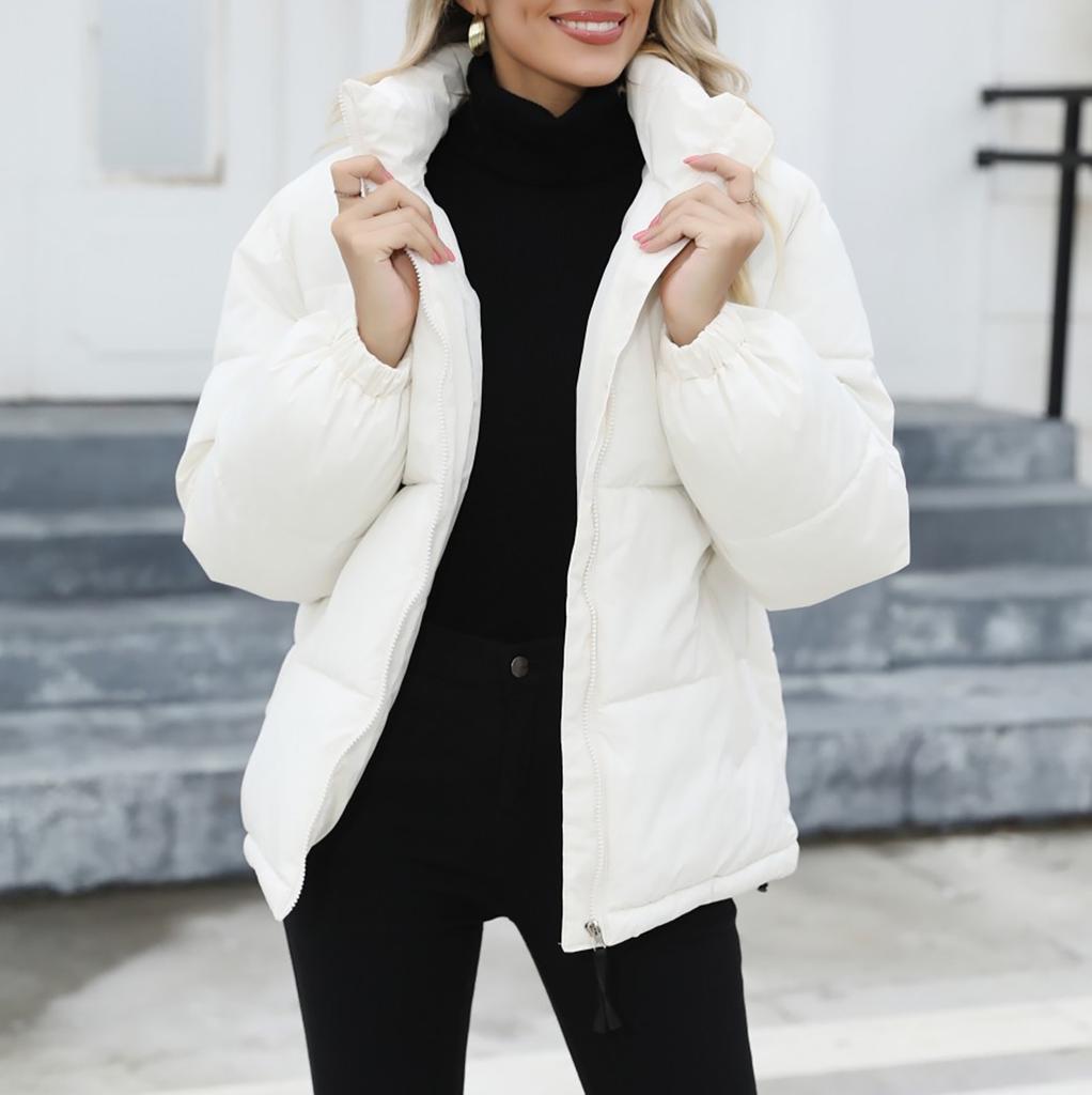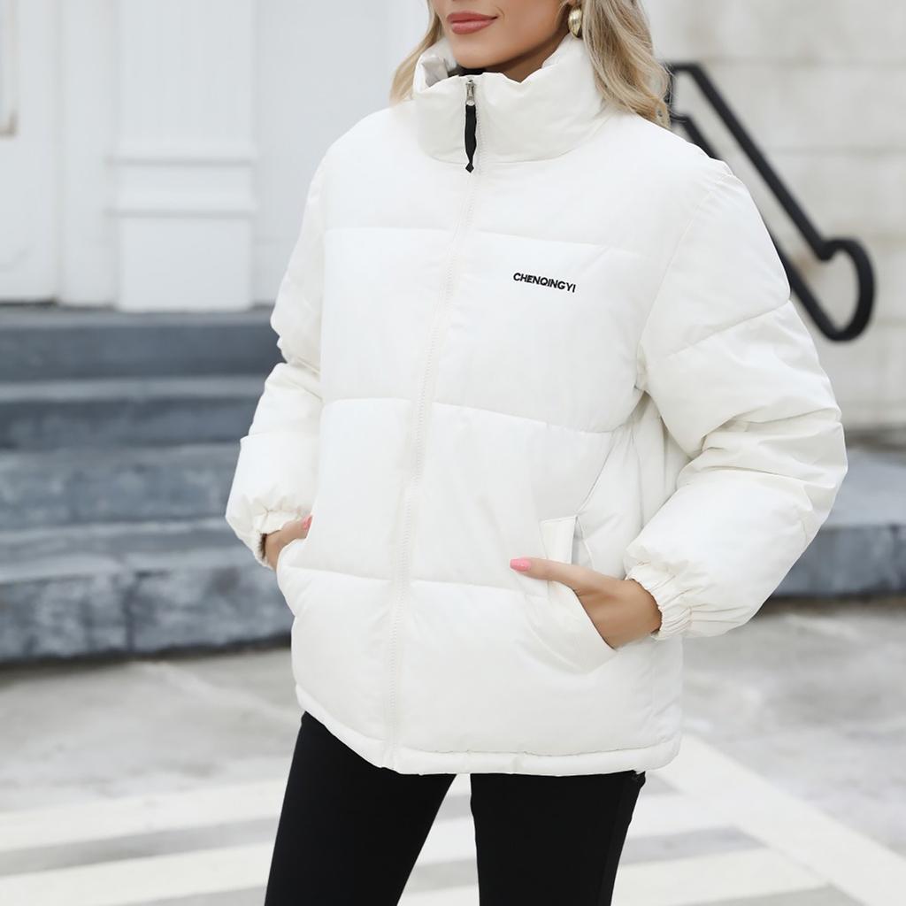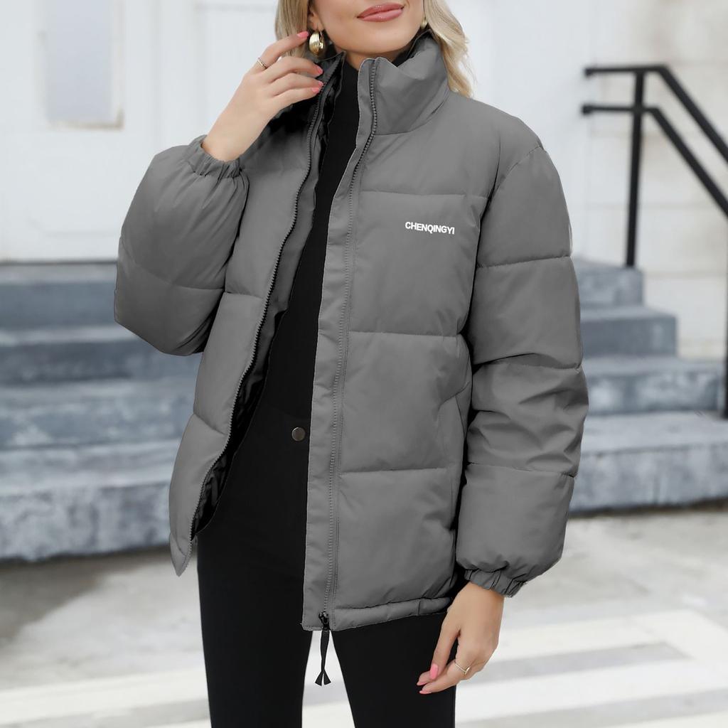 Женская мода повседневная однотонная куртка-пальто с длинным рукавом из хлопка на молнии