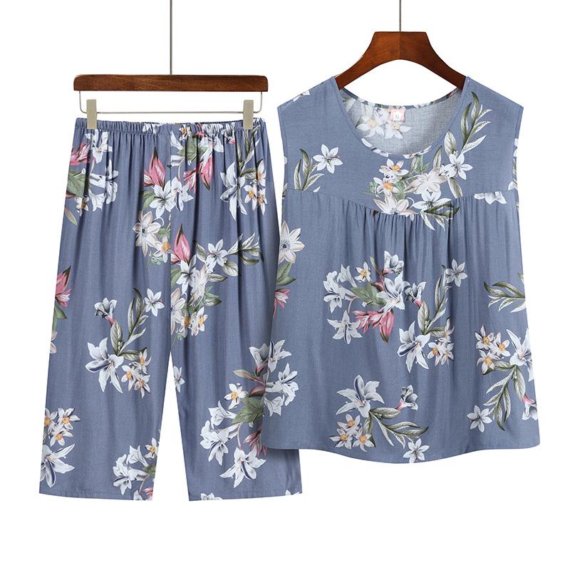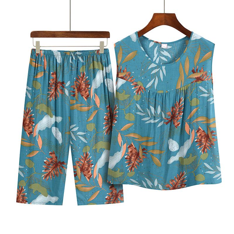 Летний прохладный комплект из двух предметов без рукавов для женщин, 2023: Круглый вырез и принт