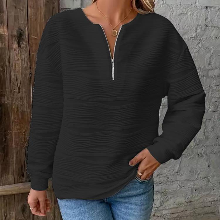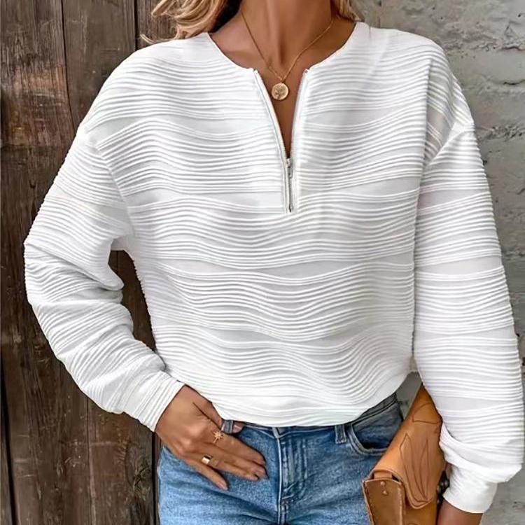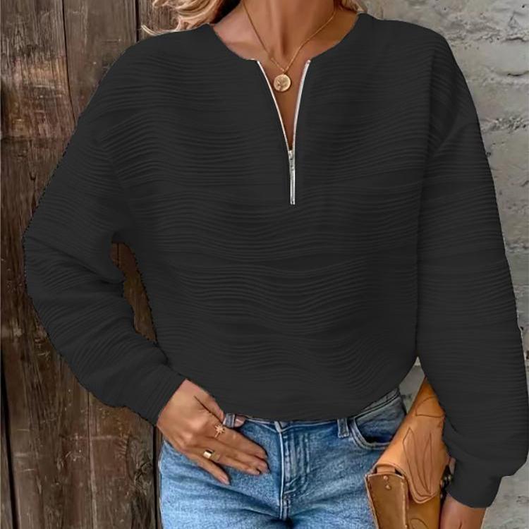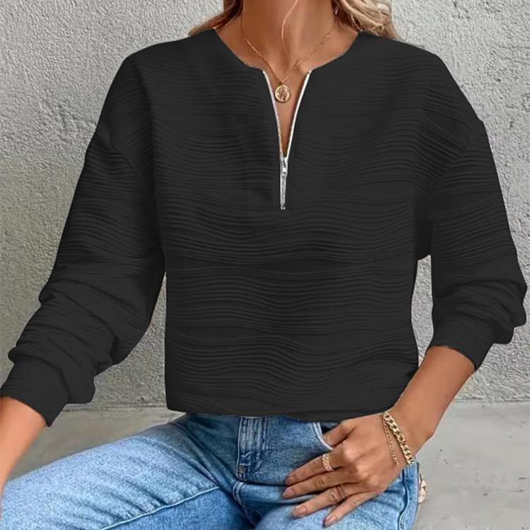 Осенне-зимняя мода женские повседневные однотонные толстовки с полумолнией и длинными рукавами с текстурированными топами