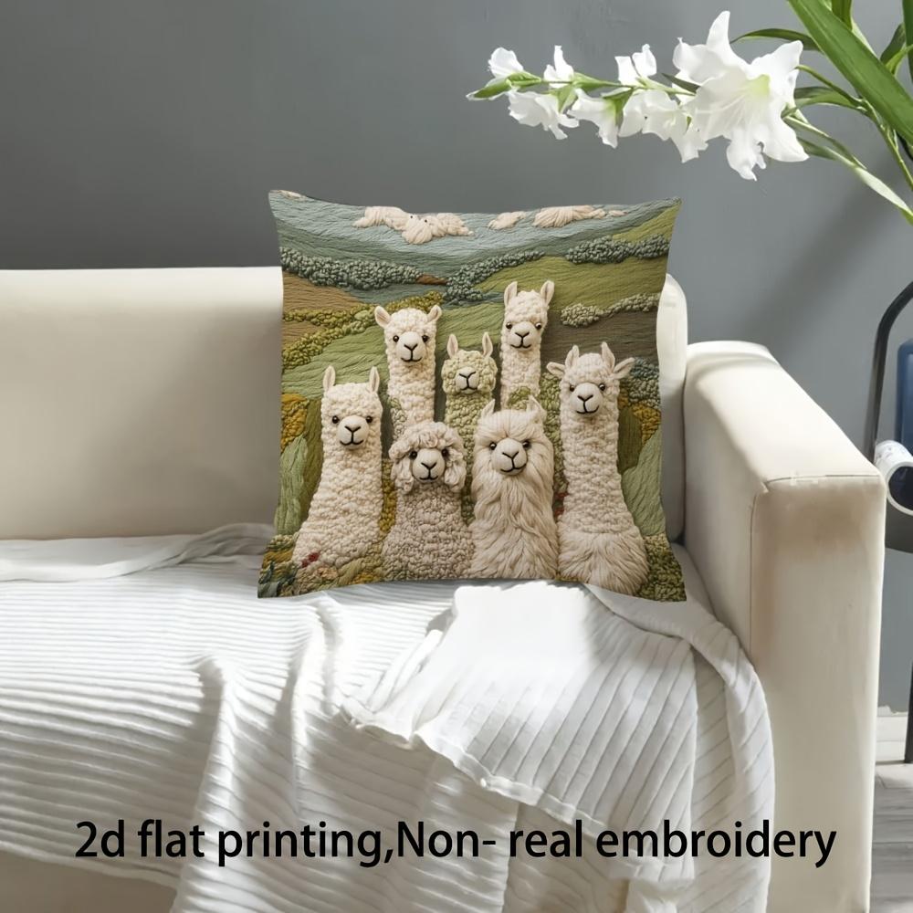 2D плоская печать, супер мягкая короткая плюшевая наволочка, двойная ферма альпак имеет ощущение, не настоящая вышивка, подходит для дивана, гостиной