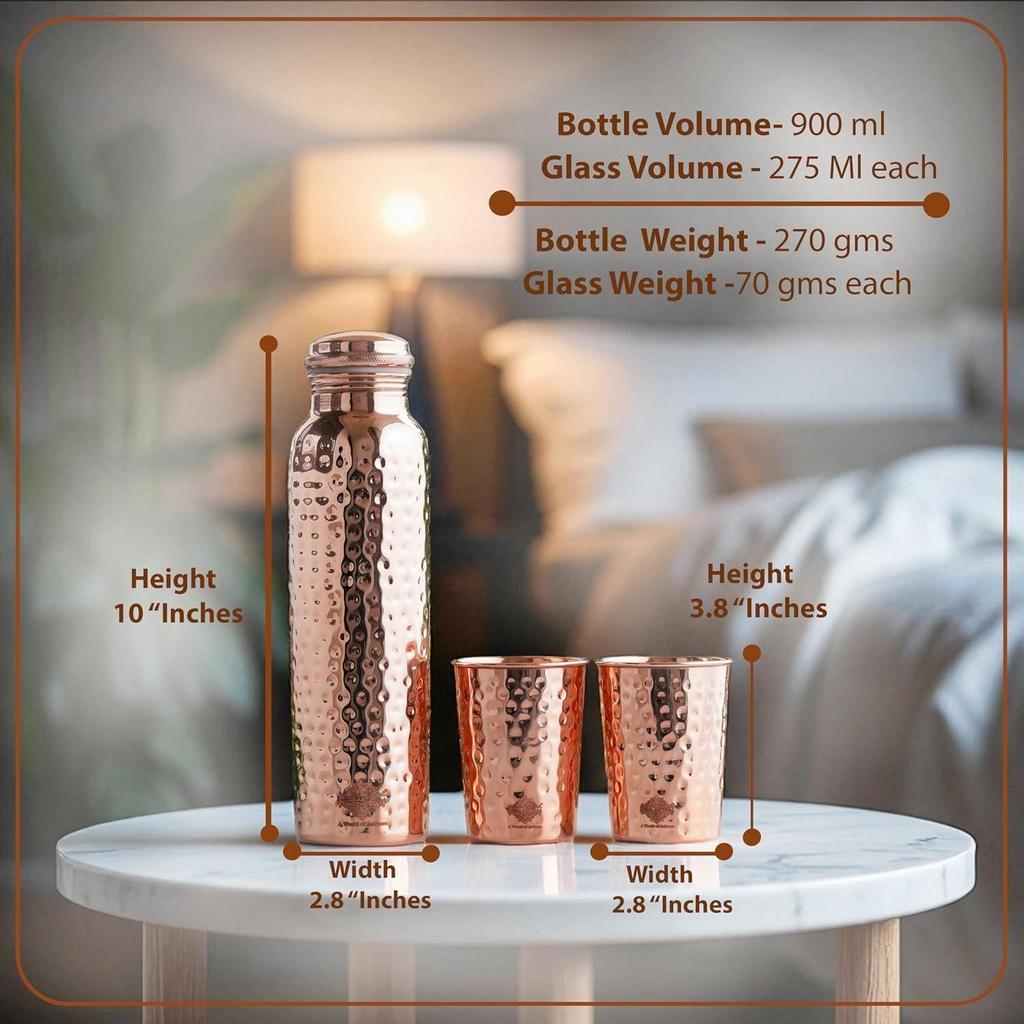 🎁 Наши дизайнерские медные бутылки для воды и стаканы имеют красивый дизайн ручной работы.. Это придает бутылке эстетичный вид посуды из медной бутылки.